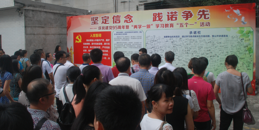 6月28日,開平市衛(wèi)生計生系統(tǒng)黨員在“七一”來臨時之際,組織黨員到市黨員服務(wù)中心參加“五個一”學習活動。 活動首先觀看教育片、學模范、重溫入黨誓詞、學習重點解決五方面問題,參加活動的同志紛紛表示,不僅自身接受了警示教育,而且強化了對法律法規(guī)黨紀知識的理解和掌握。最后全體黨員到參加黨員志愿服務(wù)行動,在新昌中路大街小巷清理“牛皮癬”,打掃衛(wèi)生死角。 市衛(wèi)生計生局領(lǐng)導要求,“兩學一做”學習教育要求嚴、標準高、任務(wù)重,各黨支部務(wù)必高度重視,擺上重要議事日程,切實加強組織領(lǐng)導,精心安排部署。全系統(tǒng)上下一定要把思想和行動統(tǒng)一到中央和省、市委的部署要求上來,迅速掀起“兩學一做”學習教育的熱潮,進一步增強政治意識、大局意識、核心意識、看齊意識,團結(jié)一心,勇于擔當,勤奮工作,努力開創(chuàng)全市衛(wèi)生計生事業(yè)發(fā)展新局面。