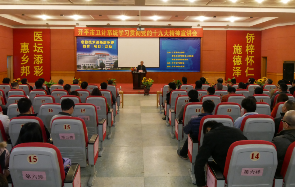 12月20日晚上,開(kāi)平市衛(wèi)生計(jì)生系統(tǒng)召開(kāi)學(xué)習(xí)貫徹黨的十九大精神宣講會(huì),特邀請(qǐng)市委宣講團(tuán)成員、市紀(jì)委邱鎮(zhèn)堯常委作專題輔導(dǎo),市衛(wèi)生計(jì)生局黨組書(shū)記、局長(zhǎng)朱喬主持宣講會(huì),市衛(wèi)生計(jì)生系統(tǒng)300多名黨員干部參加了宣講會(huì)。 邱鎮(zhèn)堯緊緊圍繞十九大精神進(jìn)行了深入系統(tǒng)的闡述,從黨的十九大的主題、主要成果等八個(gè)方面,通過(guò)列舉通俗易懂例子,為我們作了精彩的輔導(dǎo)報(bào)告,讓我們進(jìn)一步加深了對(duì)黨的十九大精神的理解。 朱喬提出三點(diǎn)工作要求:一是確保真學(xué)真懂,將學(xué)習(xí)宣傳貫徹十九大精神作為政治任務(wù)和當(dāng)前重要工作抓好抓實(shí);二是對(duì)照健康開(kāi)平,推動(dòng)黨的十九大精神在衛(wèi)計(jì)系統(tǒng)落地生根、開(kāi)花結(jié)果;三是牢固樹(shù)立“四個(gè)意識(shí)”鍥而不舍抓好作風(fēng)建設(shè)。