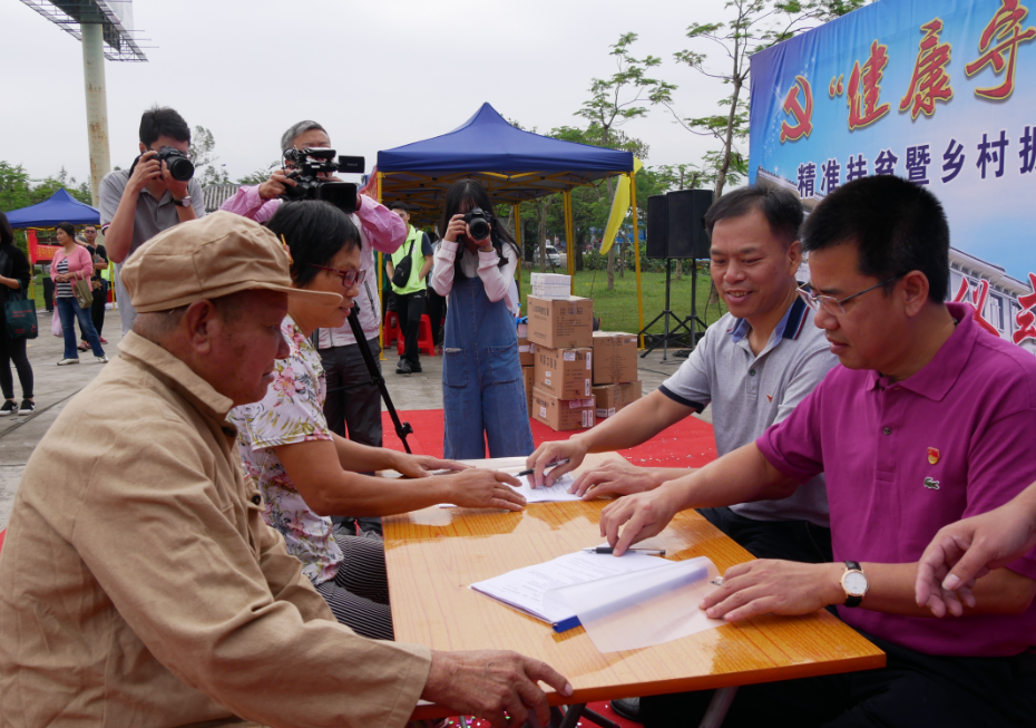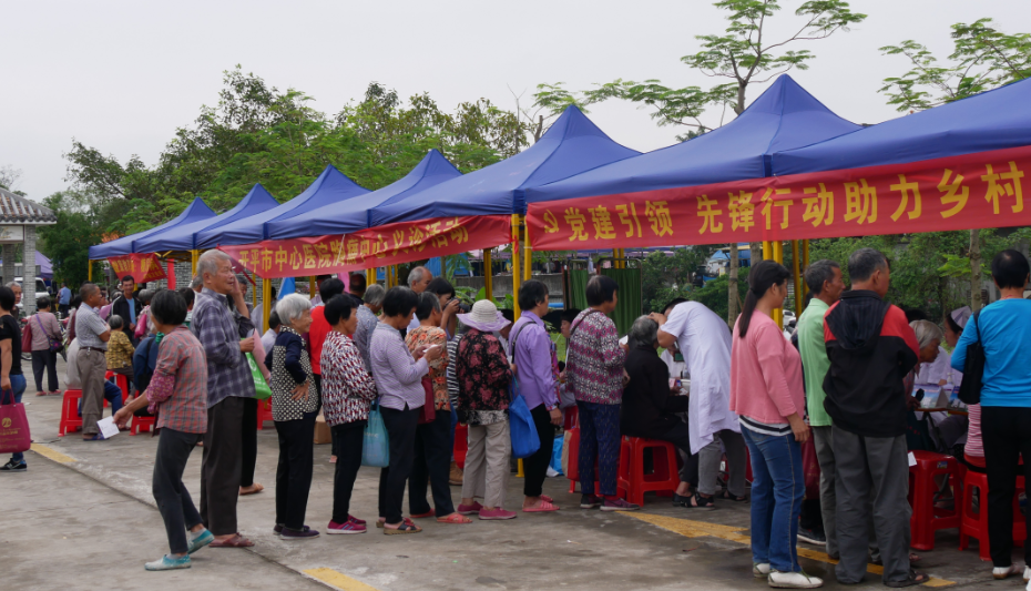 10月16日上午,開平市衛(wèi)生和計劃生育局聯(lián)合塘口鎮(zhèn)委、鎮(zhèn)政府和市中心醫(yī)院、市中醫(yī)院、塘口鎮(zhèn)衛(wèi)生院在塘口鎮(zhèn)立園景區(qū)路口舉辦“健康守護者”精準扶貧暨鄉(xiāng)村振興服務(wù)活動啟動儀式,活動現(xiàn)場還舉辦開平市衛(wèi)計局黨員義診服務(wù)站揭牌儀式。由市中心醫(yī)院副院長李玉巧主持本次啟動儀式,市衛(wèi)計局黨組書記、局長黃奕強、塘口鎮(zhèn)黨委書記溫家林、市農(nóng)業(yè)局副局長高向東、市中心醫(yī)院院長方萬強、市中醫(yī)醫(yī)院院長陳祖彥等領(lǐng)導(dǎo)出席本次啟動儀式。 開平市衛(wèi)計局黨員義診服務(wù)站是我局成立的首個黨員義診服務(wù)站,設(shè)立在塘口鎮(zhèn)衛(wèi)生院,每逢星期日組織全市大醫(yī)院黨員干部醫(yī)療骨干下基層進鄉(xiāng)村開展義診活動。黨員義診服務(wù)站的成立旨在堅持“黨建引領(lǐng)、健康惠民”,推出“五項惠民”措施,筑牢“大健康”,防線豐富“生態(tài)宜居”元素,助力鄉(xiāng)村振興,持續(xù)打造“健康守護者”黨建品牌。 此次義診活動特邀市中心醫(yī)院11名黨員醫(yī)療專家到活動現(xiàn)場開展義診活動,是深入貫徹黨的十九大精神,全面實施健康中國戰(zhàn)略的具體體現(xiàn),是踐行新形勢下黨的衛(wèi)生健康工作方針、堅持“大健康、大衛(wèi)生”理念的具體舉措。黨員干部以實際行動踐行“不忘初心、牢記使命”,旨在將黨建與健康扶貧工作深度融合、健康保障事業(yè)與鄉(xiāng)村振興戰(zhàn)略緊密結(jié)合,為健康開平貢獻一份力量。 此次義診活動一共為320多名村民提供了義務(wù)診療服務(wù),為260多名村民提供了健康咨詢服務(wù),發(fā)放了各種健康宣傳資料450多份,免費發(fā)放了價值八萬多元的藥品。黨員義診專家熱情周到的服務(wù)受到了塘口鎮(zhèn)群眾的一致高度稱贊,以實際行動詮釋新時代衛(wèi)計系統(tǒng)黨員干部心系群眾、服務(wù)基層的優(yōu)良傳統(tǒng)和奉獻精神。參加義診活動的黨員干部紛紛表示將不斷增強黨員服務(wù)意識,充分發(fā)揮黨員先鋒模范作用,進一步弘揚奉獻精神,以實際行動為黨旗增光添彩。