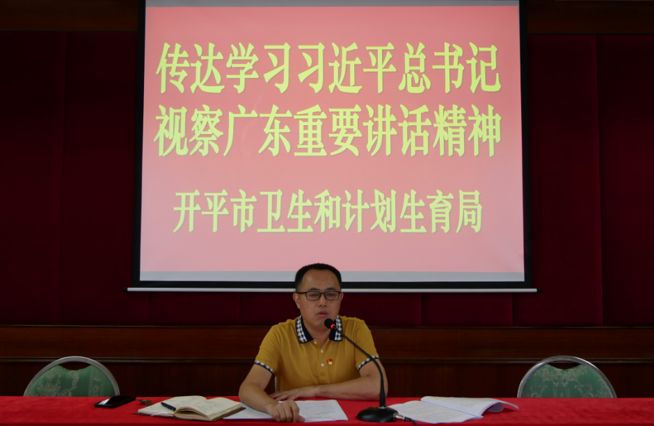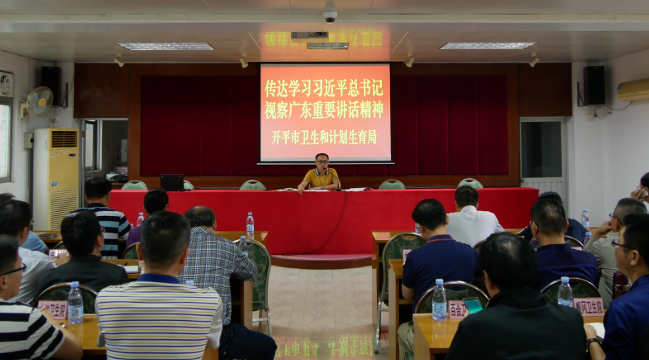 11月2日下午,開平市衛(wèi)生計生局在六樓召開會議傳達(dá)學(xué)習(xí)貫徹習(xí)近平總書記視察廣東重要講話精神和省、市有關(guān)會議精神。市衛(wèi)生計生局黨組書記、局長黃奕強(qiáng)主持會議。局全體黨員干部、各醫(yī)療衛(wèi)生單位負(fù)責(zé)人,共50余人參加。 會議指出,要深刻領(lǐng)會習(xí)近平總書記視察廣東重要講話的豐富內(nèi)涵和精神實(shí)質(zhì),切實(shí)用以統(tǒng)一思想、指導(dǎo)實(shí)踐、引領(lǐng)發(fā)展。一要深刻領(lǐng)會習(xí)近平總書記對廣東工作的充分肯定和深切期望,把習(xí)近平總書記的肯定鼓勵化為以習(xí)近平新時代中國特色社會主義思想指導(dǎo)一切工作、處理一切問題的政治自覺和行動自覺,精神更加振奮,意志更加堅定,奮力開創(chuàng)廣東工作新局面。二要深刻領(lǐng)會習(xí)近平總書記提出的深化改革開放、推動高質(zhì)量發(fā)展、提高發(fā)展平衡性和協(xié)調(diào)性、加強(qiáng)黨的領(lǐng)導(dǎo)和黨的建設(shè)四個方面重要要求,一條條認(rèn)真梳理、一項(xiàng)項(xiàng)深入研究,扎扎實(shí)實(shí)推動落實(shí),進(jìn)一步完善工作思路、抓牢工作重點(diǎn),把新時代發(fā)展的路子走對走實(shí)走好。三要深刻領(lǐng)會習(xí)近平總書記對廣東發(fā)展寄予的殷切期望,切實(shí)提高政治站位,強(qiáng)化政治擔(dān)當(dāng),更加自覺地扛起沉甸甸的歷史責(zé)任,努力在新時代實(shí)現(xiàn)新作為作出新貢獻(xiàn),不辜負(fù)習(xí)近平總書記的信任和重托,不辜負(fù)廣東父老鄉(xiāng)親的期望。 會議強(qiáng)調(diào),要迅速興起學(xué)習(xí)宣傳貫徹?zé)岢?,確保學(xué)習(xí)貫徹習(xí)近平總書記視察廣東重要講話精神取得扎實(shí)成效。一要把學(xué)習(xí)宣傳貫徹習(xí)近平總書記重要講話精神作為當(dāng)前和今后一個時期的頭等大事和首要政治任務(wù)。各黨組要從牢固樹立“四個意識”、堅定“四個自信”、踐行“兩個維護(hù)”的高度,加強(qiáng)組織領(lǐng)導(dǎo),精心制定方案,周密安排部署,迅速開展學(xué)習(xí)宣傳貫徹工作。