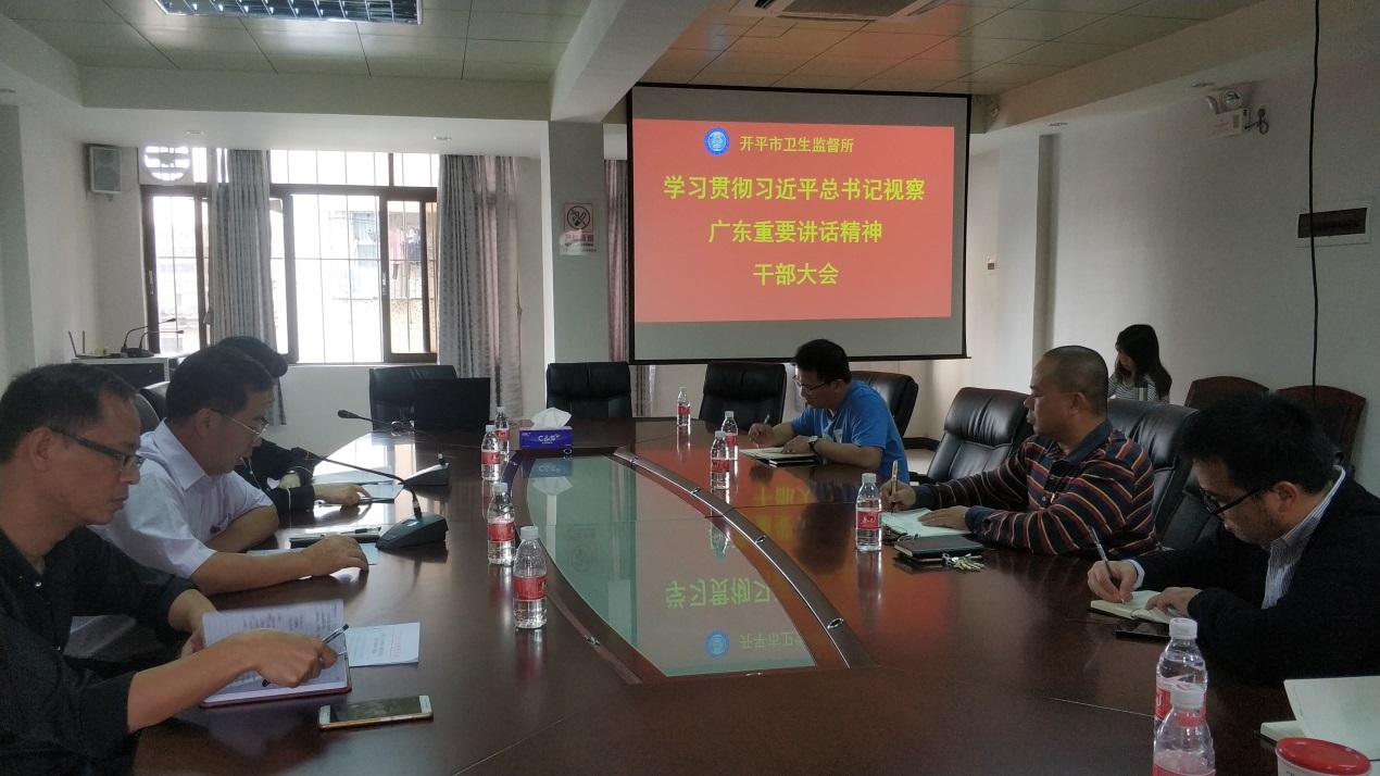 11月8、9日,市衛(wèi)計(jì)局黨組成員謝劍雄到我市衛(wèi)生監(jiān)督所、玲瓏醫(yī)院、塘口衛(wèi)生院等醫(yī)療衛(wèi)生單位,組織黨員干部學(xué)習(xí)貫徹習(xí)近平總書記視察廣東重要講話精神,并開展掃黑除惡、安全生產(chǎn)等工作檢查和部署。 謝劍雄向各單位黨員干部傳達(dá)學(xué)習(xí)貫徹習(xí)近平總書記視察廣東重要講話精神,對(duì)黨員干部提出四點(diǎn)工作要求:一是要迅速興起宣傳學(xué)習(xí)的熱潮,讓總書記的重要講話精神傳達(dá)到職工中去,提高知曉率;二是黨支部要認(rèn)真開展各項(xiàng)學(xué)習(xí)宣教,通過形式多樣的活動(dòng)使黨員干部深入學(xué)習(xí),領(lǐng)會(huì)總書記重要講話的精神實(shí)質(zhì),不斷武裝頭腦,推動(dòng)工作;三是黨員干部要做好模范帶頭作用,真抓實(shí)干,不斷提高業(yè)務(wù)水平,始終堅(jiān)持以為人民服務(wù)的理念,為群眾辦實(shí)事;四是做好醫(yī)療衛(wèi)生服務(wù)重點(diǎn)民生工作、掃黑除惡專項(xiàng)斗爭行動(dòng)和安全生產(chǎn)工作,共建平安和諧開平,提升群眾幸福感、獲得感、安全感。
