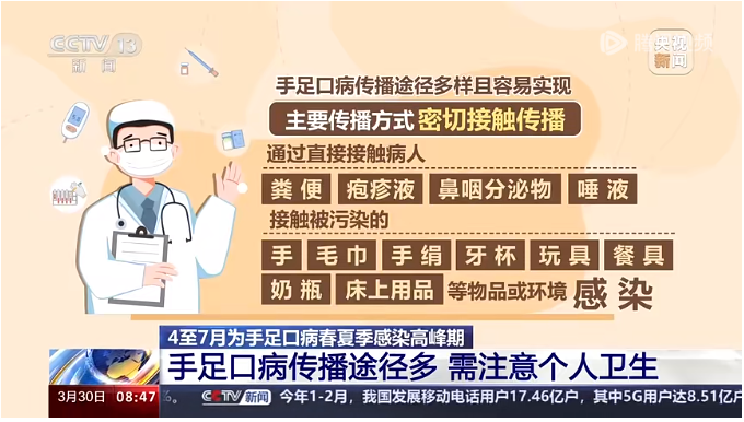 記者從疾控部門了解到,隨著氣溫回升,又到手足口病的高發(fā)季節(jié),學(xué)校和托幼機(jī)構(gòu)等人員密集場(chǎng)所發(fā)生聚集性疫情的風(fēng)險(xiǎn)升高。 專家提示,家長(zhǎng)和老師要多關(guān)注孩子手、足、口等部位的癥狀表現(xiàn),發(fā)現(xiàn)異常應(yīng)及時(shí)就診。 手足口病是由多種腸道病毒引起的5歲及以下兒童常見(jiàn)急性傳染疾病。全年均可發(fā)病,4—7月為春夏季高峰,9—11月為秋季高峰。 北京兒童醫(yī)院感染內(nèi)科副主任醫(yī)師郭欣介紹: 家長(zhǎng)可以通過(guò)觀察孩子的口腔、手腳有沒(méi)有相應(yīng)的皮疹,或者也會(huì)有一些其他癥狀; 有些孩子在早期可能會(huì)出現(xiàn)低熱或者拒食、口腔疼痛、流口水等; 大一些的孩子會(huì)說(shuō)嘴里面長(zhǎng)東西或者是手上腳上不舒服,這類表現(xiàn)可以早期發(fā)現(xiàn)。