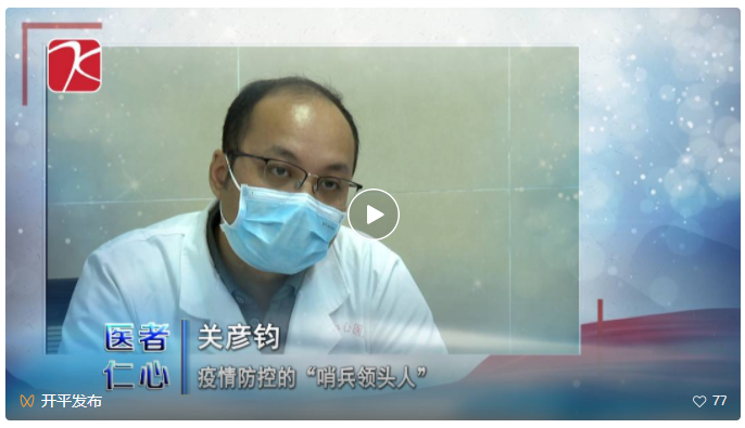 開平市中心醫(yī)院發(fā)熱門診醫(yī)師 吳嘉瑩:關(guān)彥鈞醫(yī)生是一個非常認(rèn)真負(fù)責(zé)的醫(yī)生,我每每遇到有問題的時候,不管是晚上什么時間,關(guān)彥鈞醫(yī)生都會及時接聽電話,給我們最關(guān)鍵的指導(dǎo)。他也會反復(fù)地跟我們強調(diào)說,對患者必須要有足夠的耐心了解他們的情況,用最快的方式幫他們解決問題。