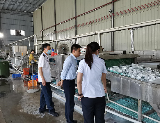 來源:開平市衛(wèi)生監(jiān)督所 為確保江門市創(chuàng)建“國家食品安全示范城市”工作有序推進,如期完成創(chuàng)建任務,近日,市衛(wèi)生監(jiān)督所按照自身職能和上級工作要求,對轄區(qū)內餐飲具集中消毒服務單位開展監(jiān)督檢查。 衛(wèi)生監(jiān)督員重點對餐飲具集中消毒單位的環(huán)境衛(wèi)生、洗消流程、生產用水、洗滌劑、包裝標識、餐飲具出廠前檢驗等情況進行了監(jiān)督檢查。檢查情況總體良好,對檢查中發(fā)現(xiàn)的問題,衛(wèi)生監(jiān)督員當場下達了衛(wèi)生監(jiān)督意見書,責令當事人立即改正。 下一步,市衛(wèi)生監(jiān)督所將繼續(xù)加強對餐飲具集中消毒服務單位的監(jiān)管,督促餐飲具集中消毒服務單位全面落實餐具清洗消毒各項衛(wèi)生要求,為我市高質量完成創(chuàng)建任務作出應有貢獻。