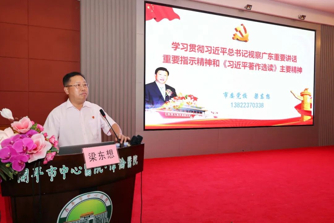 為學習貫徹習近平總書記視察廣東重要講話重要指示精神和《習近平著作選讀》主要精神,慶祝中國共產(chǎn)黨成立102周年,動員和激勵基層黨組織和全院黨員干部堅定理想信念,弘揚偉大建黨精神,進一步增強黨組織的政治功能和組織功能,根據(jù)上級黨組織的文件精神和工作部署,開平市中心醫(yī)院醫(yī)院黨委在建黨102周年之際舉行了慶祝中國共產(chǎn)黨成立102周年暨“七一”表彰大會。 ▲大會在莊嚴雄壯的國歌聲中拉開序幕。 ▲大會特別邀請開平市委宣講團成員梁東想同志宣講“學習貫徹習近平總書記視察廣東重要講話重要指示精神和《習近平著作選讀》主要精神”,讓習近平新時代中國特色社會主義思想在開平市中心醫(yī)院更好地落地生根、結(jié)出碩果。 ▲黨委書記方萬強就2023年開平市中心醫(yī)院黨委落實全面從嚴治黨主體責任工作安排進行黨課輔導。 ▲黨委副書記、院長吳焯鵬宣讀表彰先進的決定,進一步營造崇尚榜樣、爭當榜樣、積極向上、比學趕超的氛圍。 ▲黨委副書記鄺家俊就完成黨支部換屆改選宣讀《吳釗華等同志任職的決定》。 ▲黨委委員、副院長吳妙瓊要求全院黨員干部做好醫(yī)共體建設(shè)與主題黨日融合的無縫對接。 ▲新黨支部書記代表劉艷虹同志作了表態(tài)發(fā)言,宣誓、承諾作為一名新黨支部書記,將堅持黨建引領(lǐng),用自己的實際行動,當好黨支部書記,把黨建工作全面融入日常工作中。 ▲全院黨員干部還觀看了視頻《時代楷模