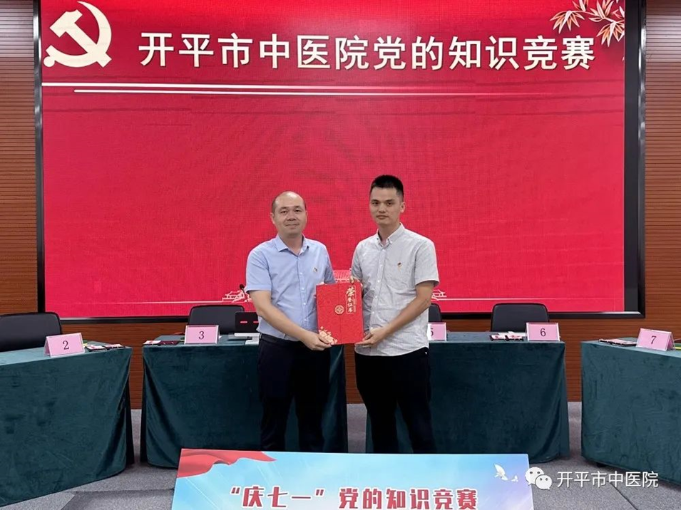 同心筑夢,永跟黨走!為慶祝黨的生日,增強廣大黨員責(zé)任感和使命感,進一步深化黨建工作,6月26日晚上,開平市中醫(yī)院黨委舉辦慶“七一”黨的知識競賽,14位選手及7個團隊登臺競技,一展風(fēng)采。 競賽活動在總院多功能廳進行,市衛(wèi)健局黨組成員蘇黎明出席活動,醫(yī)院黨政領(lǐng)導(dǎo)班子成員及百余名黨員參加。 競賽設(shè)置個人賽和團隊賽,分必答題、搶答題兩種類型,題目包括黨的基本知識、黨的二十大知識、黨史知識、聽紅歌猜歌名、看圖說史等,內(nèi)容豐富,知識覆蓋面較廣。 參賽團隊精神飽滿,默契配合。選手們沉著冷靜,應(yīng)答如流。 場上比分交替上升,扣人心弦。 黨員們熱情高漲,紛紛為各自支持的隊伍打CALL,掌聲、歡呼聲此起彼伏,整個比賽過程精彩紛呈,氣氛嚴(yán)肅卻不失活躍。 經(jīng)過激烈角逐,方曉虹、周露、陳琰妃分別獲得個人賽一等獎、二等獎、三等獎;陳志堯、鄧素玲、梁思敏、劉偉健、羅裕津等5人獲優(yōu)勝獎。團隊賽,第七黨支部獲得一等獎,第一黨支部獲得二等獎,第六黨支部獲得三等獎。 頒獎儀式 市衛(wèi)健局黨組成員蘇黎明及醫(yī)院黨政領(lǐng)導(dǎo)班子成員為獲獎個人和團隊頒獎。 個人賽 ▲黨委副書記、院長胡敏超為個人賽一等獎獲得者頒獎 ▲黨委委員、副院長陳緣超為個人賽二等獎獲得者頒獎 ▲副院長余健成為個人賽三等獎獲得者頒獎 ▲黨委委員、黨政辦公室主任周建洲為個人賽優(yōu)勝獎獲得者頒獎 團隊賽 ▲市衛(wèi)健局黨組成員蘇黎明為團隊賽一等獎頒獎 ▲黨委委員、副院長勞梅新為團隊賽二等獎頒獎 ▲黨委委員、黨政辦公室主任周建洲為團隊賽三等獎頒獎 “你們展示了扎實的知識功底和出色的臨場反應(yīng)能力,祝賀你們?!贬t(yī)院黨委副書記、院長胡敏超講話,對獲獎個人和團隊表示熱烈的祝賀,他指出,競賽活動既檢驗了黨員干部的知識儲備,又增強了團隊的凝聚力和戰(zhàn)斗力,希望全體黨員干部不斷提高政治站位,凝聚智慧和力量,以黨建引領(lǐng)醫(yī)院高質(zhì)量發(fā)展,為百姓健康護航。