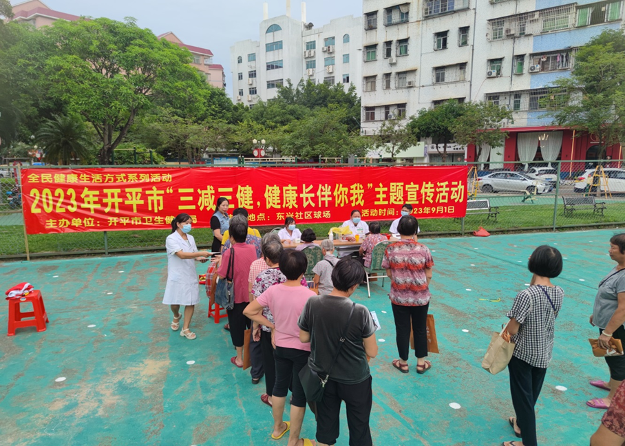 9月1日下午,開平市衛(wèi)生健康局聯(lián)合長(zhǎng)沙社區(qū)衛(wèi)生服務(wù)中心,在長(zhǎng)沙街道東興社區(qū)球場(chǎng)開展“三減三健,健康長(zhǎng)伴你我”主題宣傳活動(dòng),吸引了社區(qū)周邊居民參與活動(dòng)。 活動(dòng)現(xiàn)場(chǎng),工作人員為居民們發(fā)放“健康素養(yǎng)66條”宣傳本、“減鹽”勺子,醫(yī)護(hù)人員為居民們提供了測(cè)量測(cè)試心率、血壓、血糖、體重等免費(fèi)服務(wù)。針對(duì)社區(qū)中易患高血壓、高血糖、高血脂、糖尿病、肥胖癥等疾病的老年居民,醫(yī)護(hù)人員也在進(jìn)一步詢問并了解他們的生活習(xí)慣和身體狀況后,做出針對(duì)性診斷和相關(guān)建議,并對(duì)居民們進(jìn)行“三減三健”健康生活方式的宣傳講解,“三減三健”即減鹽、減油、減糖以及健康口腔、健康體重、健康骨骼。 東興社區(qū)此次宣傳活動(dòng)提高了轄區(qū)居民自我健康維護(hù)的意識(shí),引導(dǎo)居民改善自己的飲食結(jié)構(gòu)以及生活狀態(tài),讓居民意識(shí)到每個(gè)人都是自己健康第一責(zé)任人,提升居民的生活幸福感和認(rèn)同感,共同建設(shè)健康和諧的幸福社區(qū)。
