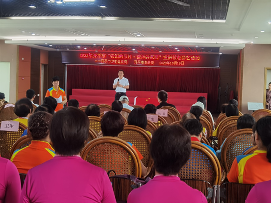 秋風(fēng)送爽,又逢重陽(yáng),為進(jìn)一步弘揚(yáng)中華民族尊老、敬老、愛(ài)老的傳統(tǒng)美德。10月19日下午,在喜迎重陽(yáng)來(lái)臨之際,市衛(wèi)生健康局、市老齡委在老干部活動(dòng)中心舉辦2023年開(kāi)平市“我們的節(jié)日.精神的家園”重陽(yáng)敬老曲藝活動(dòng)。市衛(wèi)生健康局副局長(zhǎng)蘇黎明出席活動(dòng)并發(fā)表講話(huà),活動(dòng)現(xiàn)場(chǎng)有近150多人觀看了演出。 活動(dòng)現(xiàn)場(chǎng)文藝骨干和老年人歡聚一堂,現(xiàn)場(chǎng)演出活動(dòng)形式多樣,內(nèi)容豐富,精彩紛呈。歌舞、手語(yǔ)舞、大合唱等精彩節(jié)目贏得了臺(tái)下觀眾的陣陣掌聲。匯演最后還給老人贈(zèng)送了小禮品和節(jié)日的問(wèn)候。關(guān)愛(ài)老人不僅是重陽(yáng)節(jié)的傳統(tǒng)習(xí)俗,也是中國(guó)傳統(tǒng)文化的重要組成部分,積極營(yíng)造敬老助老的和諧社會(huì)氛圍,積極為老人開(kāi)展各項(xiàng)活動(dòng),讓老人們感受到老有所養(yǎng)、老有所依、老有所樂(lè)、老有所為的社會(huì)氛圍。 此次文藝演出營(yíng)造了濃厚的節(jié)日文化氛圍,豐富了老人們的精神文化生活,贏得了廣大老人的喜愛(ài)和贊賞。