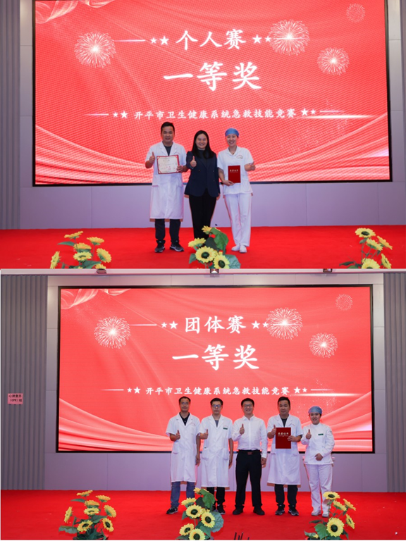 為充分調(diào)動(dòng)我市急救工作者立足本職、刻苦鉆研業(yè)務(wù)技術(shù)、提高急救醫(yī)療服務(wù)水平及突發(fā)公共衛(wèi)生事件應(yīng)急處理能力,11月14日下午,開(kāi)平市衛(wèi)生健康局、開(kāi)平市總工會(huì)于中心醫(yī)院門(mén)診樓五樓會(huì)議室聯(lián)合舉辦全市衛(wèi)生健康系統(tǒng)急救技能競(jìng)賽,來(lái)自各市直、基層醫(yī)療機(jī)構(gòu)的22名選手參加了個(gè)人賽,14支隊(duì)伍參加了團(tuán)隊(duì)賽。市總工會(huì)副主席李好林、市衛(wèi)生健康局副局長(zhǎng)蘇黎明以及各有關(guān)醫(yī)療機(jī)構(gòu)領(lǐng)導(dǎo)嘉賓出席了本次活動(dòng)。 開(kāi)平市衛(wèi)生健康系統(tǒng)急救技能競(jìng)賽 獲獎(jiǎng)名單 個(gè)人賽: 一等獎(jiǎng): 梁永權(quán)(開(kāi)平市中心醫(yī)院) 關(guān)秀滿(mǎn)(開(kāi)平市中醫(yī)院) 二等獎(jiǎng): 鄧榮澤(開(kāi)平市三埠街道辦事處社區(qū)衛(wèi)生服務(wù)中心) 謝 輝(開(kāi)平市中心醫(yī)院) 林俊彬(開(kāi)平市第二人民醫(yī)院) 陳景麗(開(kāi)平市水口醫(yī)院) 三等獎(jiǎng): 廖明財(cái)(開(kāi)平市第二人民醫(yī)院) 郭浩楓(開(kāi)平市蒼城鎮(zhèn)中心衛(wèi)生院) 何燕輝(開(kāi)平市長(zhǎng)沙街道辦事處社區(qū)衛(wèi)生服務(wù)中心) 羅偉松(開(kāi)平市馬岡鎮(zhèn)衛(wèi)生院) 朱建垚(開(kāi)平市水口醫(yī)院) 陳偉勝(開(kāi)平市赤水鎮(zhèn)衛(wèi)生院) 施建全(開(kāi)平市金雞鎮(zhèn)衛(wèi)生院) 陳淼鴻(開(kāi)平市蜆岡鎮(zhèn)衛(wèi)生院) 團(tuán)體賽: 一等獎(jiǎng): 開(kāi)平市中心醫(yī)院 二等獎(jiǎng): 開(kāi)平市第二人民醫(yī)院 開(kāi)平市中醫(yī)院 三等獎(jiǎng): 開(kāi)平市蒼城鎮(zhèn)中心衛(wèi)生院 開(kāi)平市三埠街道辦事處社區(qū)衛(wèi)生服務(wù)中心 開(kāi)平市大沙鎮(zhèn)衛(wèi)生院