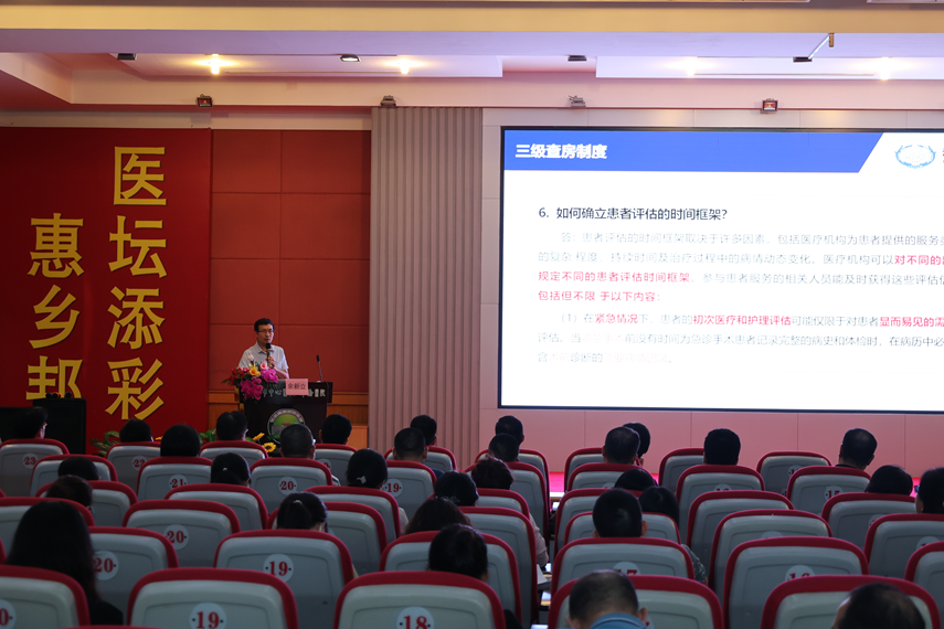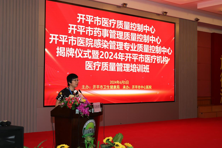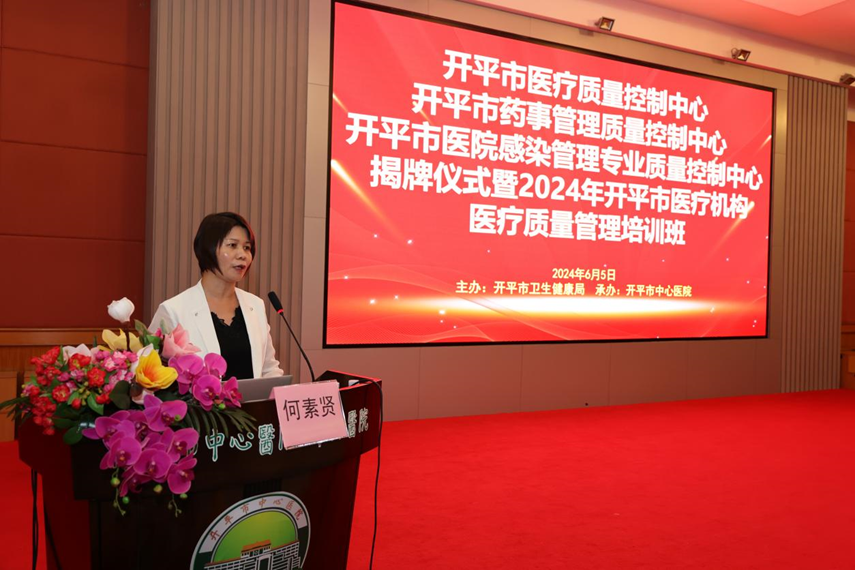 為全面提升我市醫(yī)療機(jī)構(gòu)醫(yī)療質(zhì)量、藥事管理水平,進(jìn)一步推動(dòng)我市質(zhì)量控制工作標(biāo)準(zhǔn)化、規(guī)范化和制度化建設(shè),6月5日下午,開(kāi)平市醫(yī)療質(zhì)量控制中心、開(kāi)平市藥事管理質(zhì)量控制中心、開(kāi)平市醫(yī)院感染管理專業(yè)質(zhì)量控制中心揭牌儀式在開(kāi)平市中心醫(yī)院正式舉行。市衛(wèi)生健康局局長(zhǎng)何素賢、副局長(zhǎng)蘇黎明,江門市中心醫(yī)院醫(yī)務(wù)部主任余新立,開(kāi)平市中心醫(yī)院院長(zhǎng)吳焯鵬、副院長(zhǎng)吳妙瓊以及全市各醫(yī)療機(jī)構(gòu)等領(lǐng)導(dǎo)出席了本次活動(dòng)。 會(huì)上,吳妙瓊對(duì)我市醫(yī)療質(zhì)量管理工作進(jìn)行了匯報(bào)。 何素賢針對(duì)我市醫(yī)療系統(tǒng)的質(zhì)量控制工作強(qiáng)調(diào)三點(diǎn)意見(jiàn):一要加強(qiáng)組織領(lǐng)導(dǎo),不斷強(qiáng)化質(zhì)量責(zé)任意識(shí)、安全意識(shí);二要加強(qiáng)業(yè)務(wù)培訓(xùn)。抓住本次醫(yī)療質(zhì)量管理培訓(xùn)班的機(jī)會(huì),強(qiáng)化自身專業(yè)素養(yǎng);三要開(kāi)展定期督查。三大質(zhì)量控制中心要加強(qiáng)對(duì)全市醫(yī)療機(jī)構(gòu)質(zhì)量控制工作的技術(shù)支持、業(yè)務(wù)指導(dǎo)及日常監(jiān)督,定期召開(kāi)質(zhì)控培訓(xùn)及質(zhì)控督查,推進(jìn)我市醫(yī)療質(zhì)量、藥事質(zhì)量及院感管理工作日漸規(guī)范化、標(biāo)準(zhǔn)化。 同時(shí),參會(huì)嘉賓共同為開(kāi)平市醫(yī)療質(zhì)量控制中心、開(kāi)平市藥事管理質(zhì)量控制中心、開(kāi)平市醫(yī)院感染管理專業(yè)質(zhì)量控制中心舉行了揭牌儀式,并與到場(chǎng)的各醫(yī)療機(jī)構(gòu)領(lǐng)導(dǎo)合影留念。 揭牌儀式結(jié)束后,江門市中心醫(yī)院醫(yī)務(wù)部余新立主任為我市醫(yī)療質(zhì)量管理培訓(xùn)班進(jìn)行了精彩的授課。課上對(duì)《醫(yī)療質(zhì)量安全核心制度要點(diǎn)釋義(第二版)》進(jìn)行了詳細(xì)的解讀,進(jìn)一步加深了我市醫(yī)務(wù)人員對(duì)醫(yī)療質(zhì)量安全核心制度的認(rèn)識(shí)和理解。