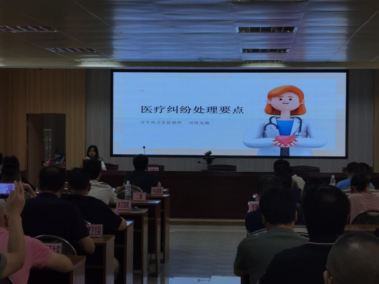 為進(jìn)一步提高我市醫(yī)療機(jī)構(gòu)醫(yī)療糾紛防范與處置能力,防范化解醫(yī)療風(fēng)險(xiǎn),不斷提升醫(yī)療服務(wù)水平和醫(yī)療質(zhì)量安全,增強(qiáng)醫(yī)務(wù)人員遵紀(jì)守法和依法執(zhí)業(yè)的意識,促進(jìn)行風(fēng)建設(shè)與醫(yī)德醫(yī)風(fēng)建設(shè)。開平市衛(wèi)生健康局于2024年6月27日舉辦醫(yī)療糾紛防范與處置暨2024年醫(yī)療機(jī)構(gòu)行風(fēng)建設(shè)、醫(yī)德醫(yī)風(fēng)培訓(xùn)班。 市衛(wèi)生健康局副局長蘇黎明出席會議并講話,對全市衛(wèi)生健康領(lǐng)域醫(yī)療糾紛防范處置、醫(yī)療質(zhì)量安全及行風(fēng)建設(shè)工作提出了五點(diǎn)要求。一是強(qiáng)化醫(yī)療質(zhì)量體系建設(shè)。各醫(yī)療機(jī)構(gòu)要進(jìn)一步健全院、科兩級醫(yī)療質(zhì)量安全管理體系,按要求成立醫(yī)療質(zhì)量管理委員會并負(fù)責(zé)日常管理工作。二是加強(qiáng)醫(yī)務(wù)人員執(zhí)業(yè)管理。加強(qiáng)對全體醫(yī)務(wù)人員的培訓(xùn)及考核,嚴(yán)格規(guī)范日常診療行為,不斷提升醫(yī)務(wù)人員的醫(yī)療服務(wù)水平。三是加強(qiáng)與患者的有效溝通。牢固樹立“以病人為中心”的服務(wù)理念,規(guī)范服務(wù)用語、行為,增強(qiáng)醫(yī)患溝通意識和能力,努力構(gòu)建和諧醫(yī)患關(guān)系。四是完善醫(yī)療糾紛處理機(jī)制。各醫(yī)療機(jī)構(gòu)要結(jié)合本單位本科室的實(shí)際,制定完善醫(yī)療糾紛處置方案,同時(shí)組織醫(yī)務(wù)人員完善病歷資料和本單位的內(nèi)部評估。五是多舉措做好行風(fēng)建設(shè)。各醫(yī)療機(jī)構(gòu)要將醫(yī)德醫(yī)風(fēng)建設(shè)、行風(fēng)建設(shè)作為一項(xiàng)常抓不懈的工作,廣泛開展警示教育活動(dòng),強(qiáng)化責(zé)任擔(dān)當(dāng)和奉獻(xiàn)精神。 會議邀請了開平市中心醫(yī)院質(zhì)控科主任戴上康對醫(yī)療質(zhì)量安全管理進(jìn)行培訓(xùn)。戴上康結(jié)合豐富的工作經(jīng)驗(yàn),以細(xì)節(jié)分析、經(jīng)驗(yàn)講授、案例分析等方式,生動(dòng)詳盡地講解了病歷書寫質(zhì)控要點(diǎn)。 隨后,市衛(wèi)生監(jiān)督所醫(yī)療股副股長司徒玉瑜為參會人員講授醫(yī)療糾紛的防范處理和依法執(zhí)業(yè)要點(diǎn)。司徒玉瑜圍繞醫(yī)療糾紛的概念、成因、防范及處理流程等方面進(jìn)行了全面系統(tǒng)地講解,并強(qiáng)調(diào)了近期檢查中發(fā)現(xiàn)的常見問題,提醒各醫(yī)療機(jī)構(gòu)加強(qiáng)風(fēng)險(xiǎn)防范意識。 市衛(wèi)生健康局醫(yī)政股負(fù)責(zé)人就醫(yī)療機(jī)構(gòu)行風(fēng)建設(shè)和醫(yī)德醫(yī)風(fēng)建設(shè)開展了培訓(xùn),強(qiáng)調(diào)醫(yī)務(wù)人員要嚴(yán)格遵守九項(xiàng)準(zhǔn)則,不斷提高自身法律意識及職業(yè)素養(yǎng),樹立良好的醫(yī)德醫(yī)風(fēng)形象。 本次培訓(xùn)深化了各醫(yī)療機(jī)構(gòu)對醫(yī)療質(zhì)量管理和防范化解醫(yī)療糾紛風(fēng)險(xiǎn)重要性的認(rèn)識,推動(dòng)全體醫(yī)務(wù)人員以對人民健康高度負(fù)責(zé)的態(tài)度,不斷改進(jìn)工作,提高醫(yī)療服務(wù)質(zhì)量,為構(gòu)建和諧醫(yī)患關(guān)系、加強(qiáng)“平安醫(yī)院”建設(shè)作出積極貢獻(xiàn)。