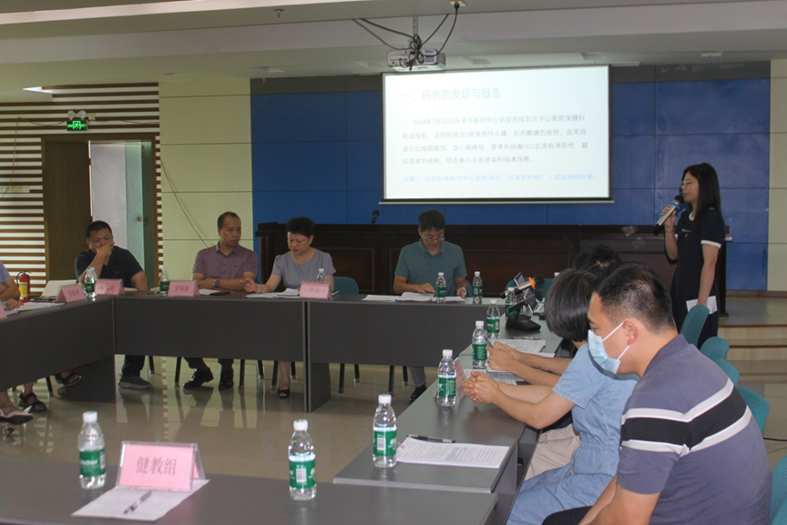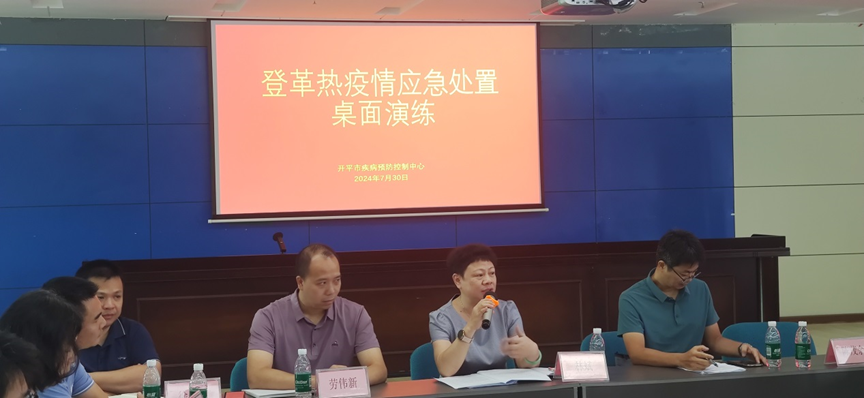 為進(jìn)一步完善我市登革熱應(yīng)急處置機(jī)制,提高我市衛(wèi)生應(yīng)急隊(duì)伍的處置能力,科學(xué)精準(zhǔn)做好登革熱疫情防控工作。7月30日,開平市衛(wèi)生健康局和開平市疾病預(yù)防控制中心組織開展了2024年開平市登革熱疫情防控應(yīng)急處置演練。江門市疾病預(yù)防控制中心應(yīng)急部陳茂余部長應(yīng)邀蒞臨指導(dǎo)與培訓(xùn),開平市衛(wèi)生健康局副局長、疾病預(yù)防控制局局長勞偉新出席并現(xiàn)場點(diǎn)評(píng),開平市疾病預(yù)防控制中心主任林斌擔(dān)任本次演練的總指揮,開平市疾病預(yù)防控制中心副主任徐健斌、檢驗(yàn)中心主任方春洲、市管干部吳麗蘭擔(dān)任演練評(píng)委。 本次活動(dòng)共分為兩部分:一是登革熱防控技術(shù)培訓(xùn)。由江門市疾病預(yù)防控制中心應(yīng)急部陳茂余部長對(duì)登革熱防控技術(shù)進(jìn)行培訓(xùn),同時(shí)解讀了當(dāng)前我省及江門市登革熱疫情的具體情況。二是登革熱本地疫情桌面演練。市疾病預(yù)防控制中心防疫股、消殺隊(duì)、檢驗(yàn)中心、健康教育股安排人員參加了演練。本次演練采用桌面推演的方式進(jìn)行,演練模擬開平市出現(xiàn)登革熱本地疫情為背景,針對(duì)病例發(fā)現(xiàn)與報(bào)告、流行病學(xué)調(diào)查、病例核實(shí)診斷、應(yīng)急響應(yīng)的啟動(dòng)、健康教育、疫情終止判定等重點(diǎn)環(huán)節(jié)進(jìn)行演練。通過此次培訓(xùn)模擬演練,應(yīng)急隊(duì)員們明確了登革熱疫情防控工作的具體要求和注意事項(xiàng),增強(qiáng)了應(yīng)急隊(duì)伍對(duì)登革熱防控的實(shí)戰(zhàn)能力,為規(guī)范做好下一階段登革熱等蟲媒傳染病防控工作打下堅(jiān)實(shí)基礎(chǔ)。 演練結(jié)束后,評(píng)委分別進(jìn)行專業(yè)點(diǎn)評(píng),各參加股室進(jìn)行了體會(huì)反饋。林斌主任就本次演練進(jìn)行總結(jié),指出當(dāng)前氣溫炎熱,是登革熱媒介伊蚊繁殖活動(dòng)的高峰期,周邊城市已報(bào)有登革熱病例,同時(shí)暑假期間旅游人員增多,境外輸入與跨市的傳播風(fēng)險(xiǎn)增高,登革熱防控形勢(shì)非常嚴(yán)峻,我市應(yīng)做好疫情監(jiān)測(cè)預(yù)警,及時(shí)采取必要的防控措施。 通過本次演練,進(jìn)一步梳理了我市登革熱本地疫情應(yīng)急處置流程,增強(qiáng)了市疾病預(yù)防控制中心各股室之間的團(tuán)隊(duì)協(xié)調(diào)配合能力和應(yīng)對(duì)突發(fā)公共衛(wèi)生事件的應(yīng)急處置能力,進(jìn)一步完善了應(yīng)急預(yù)案,為保障公眾健康和生命安全奠定了堅(jiān)實(shí)的基礎(chǔ)。