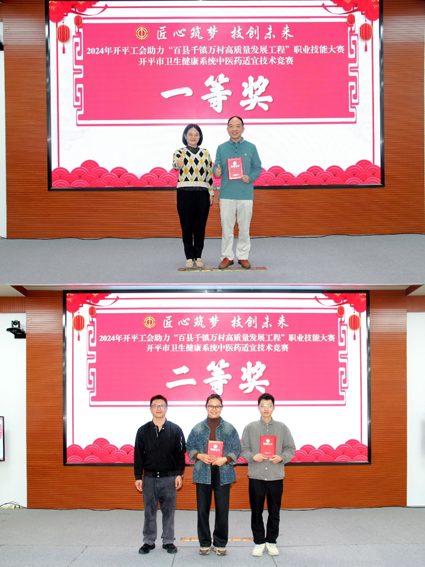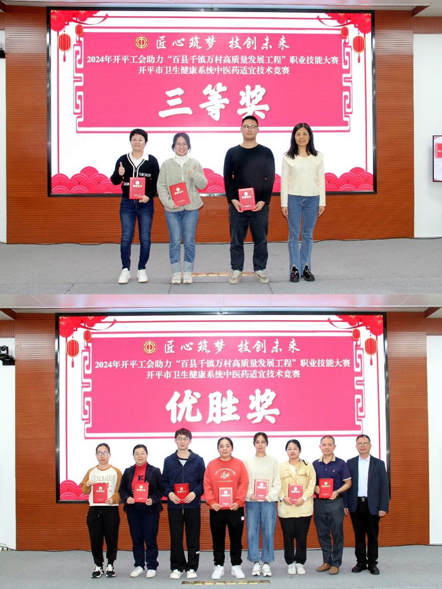 為深入貫徹黨的二十大精神,提高中醫(yī)藥適宜技術(shù)水平和服務(wù)質(zhì)量,滿足廣大人民群眾日益增長(zhǎng)的中醫(yī)藥服務(wù)需求。12月10日,市衛(wèi)生健康局聯(lián)合市總工會(huì)舉辦2024年開(kāi)平市衛(wèi)生健康系統(tǒng)中醫(yī)藥適宜技術(shù)競(jìng)賽。市總工會(huì)黨組成員、副主席李好林,市衛(wèi)生健康局黨組成員、副局長(zhǎng)蘇黎明以及各醫(yī)療機(jī)構(gòu)領(lǐng)導(dǎo)出席了此次活動(dòng)。 本次活動(dòng)由開(kāi)平市中醫(yī)藥適宜技術(shù)推廣中心、開(kāi)平市中醫(yī)院承辦,中醫(yī)適宜技術(shù)競(jìng)賽活動(dòng)分為實(shí)踐操作比賽與知識(shí)競(jìng)賽,共有13支隊(duì)伍參加競(jìng)賽。實(shí)踐操作比賽緊密結(jié)合臨床實(shí)際,參賽選手現(xiàn)場(chǎng)進(jìn)行拔火罐和銅砭刮痧操作。知識(shí)競(jìng)賽重點(diǎn)考察參賽選手對(duì)中醫(yī)藥基礎(chǔ)知識(shí)的掌握程度。參賽選手們憑借深厚的中醫(yī)功底和豐富的臨床經(jīng)驗(yàn),在有限的時(shí)間內(nèi)充分展示了他們?cè)鷮?shí)的中醫(yī)理論素養(yǎng)和應(yīng)變能力。 經(jīng)過(guò)一個(gè)下午激烈的比拼角逐,最終由開(kāi)平市月山鎮(zhèn)衛(wèi)生院獲得一等獎(jiǎng)。市衛(wèi)生健康局黨組成員、副局長(zhǎng)蘇黎明,市總工會(huì)黨組成員、副主席李好林,市總工會(huì)經(jīng)濟(jì)工作部部長(zhǎng)方潔婷,市中醫(yī)院黨委委員、副院長(zhǎng)陳緣超為獲獎(jiǎng)選手頒獎(jiǎng)。 市衛(wèi)生健康局黨組成員、副局長(zhǎng)蘇黎明作總結(jié)講話,他表示,本次競(jìng)賽不僅是一次技能的較量,更是一次中醫(yī)藥文化的傳承與交流。通過(guò)競(jìng)賽,我們看到了基層醫(yī)務(wù)人員對(duì)中醫(yī)事業(yè)的熱愛(ài)和執(zhí)著,也看到了他們?cè)谥嗅t(yī)藥適宜技術(shù)方面的扎實(shí)功底。希望廣大基層醫(yī)務(wù)人員以此為契機(jī),繼續(xù)加強(qiáng)中醫(yī)藥知識(shí)的學(xué)習(xí)和實(shí)踐,不斷提升中醫(yī)藥服務(wù)能力,促進(jìn)全市中醫(yī)藥事業(yè)高質(zhì)量發(fā)展。