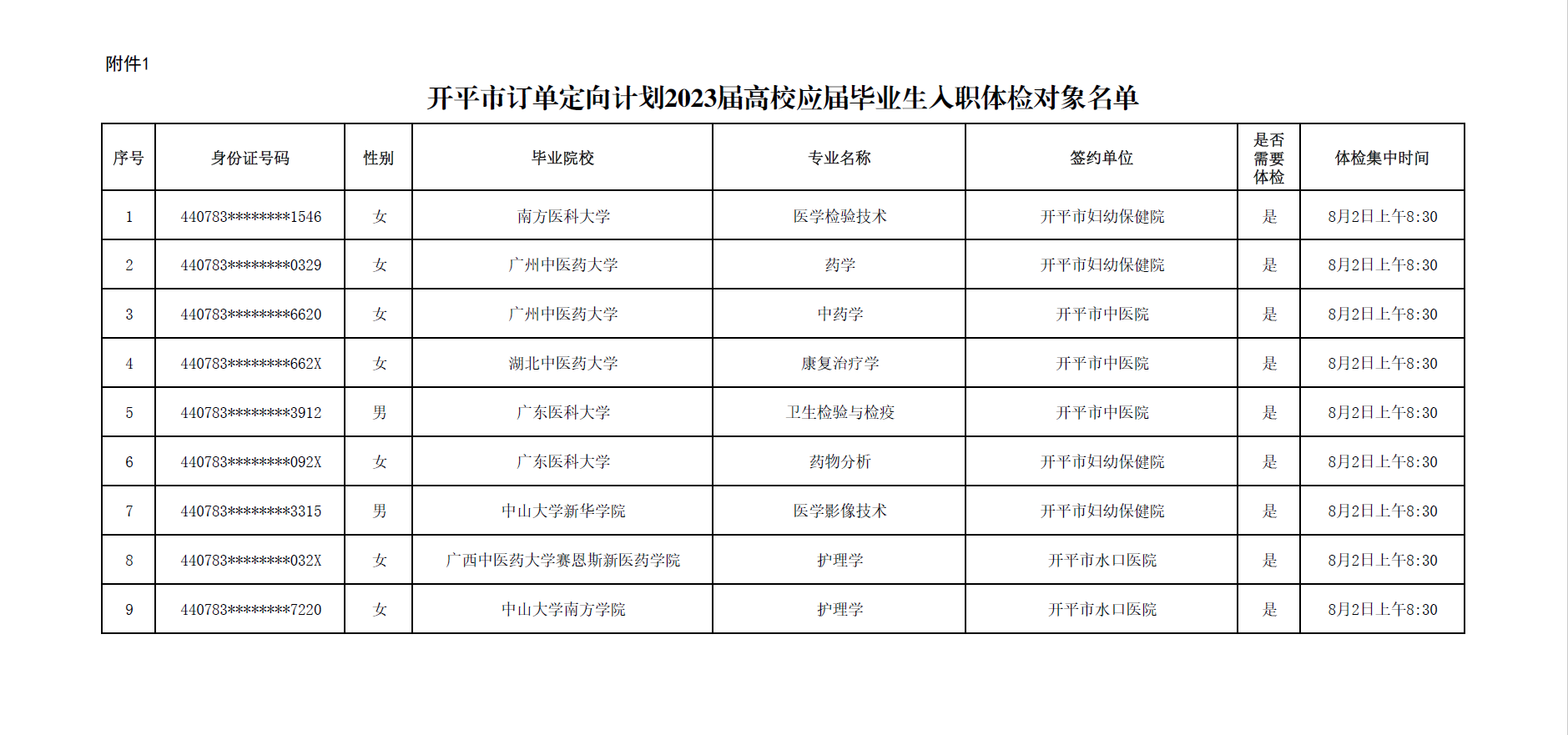 開平市訂單定向培養(yǎng)衛(wèi)生人才2023年高校應(yīng)屆畢業(yè)生入職體檢公告.pdf