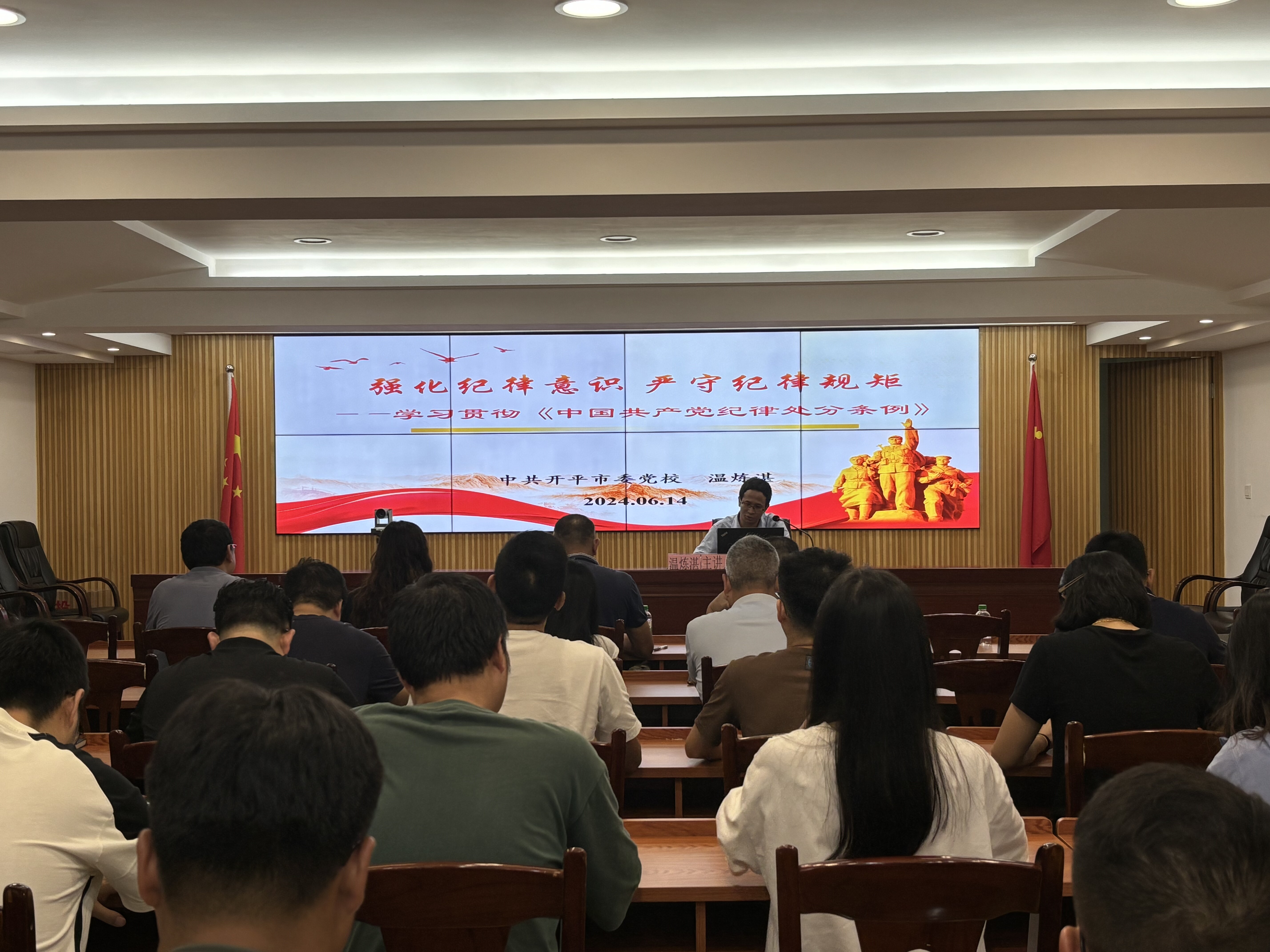 嚴(yán)守紀(jì)律規(guī)矩”為主題,從四部分深入淺出的為大家講《中國(guó)共產(chǎn)黨紀(jì)律處分條例》修改的主要特點(diǎn)、主要內(nèi)容、如何貫徹落實(shí),宣講課主題鮮明、內(nèi)涵豐富、思想深刻,為市應(yīng)急管理局黨員干部深入學(xué)習(xí)貫徹《條例》提供了指導(dǎo)。 溫老師強(qiáng)調(diào),要把學(xué)習(xí)領(lǐng)會(huì)習(xí)近平總書記關(guān)于全面加強(qiáng)黨的紀(jì)律建設(shè)的重要論述作為黨紀(jì)學(xué)習(xí)教育的重要任務(wù),深學(xué)細(xì)悟、入腦入心。