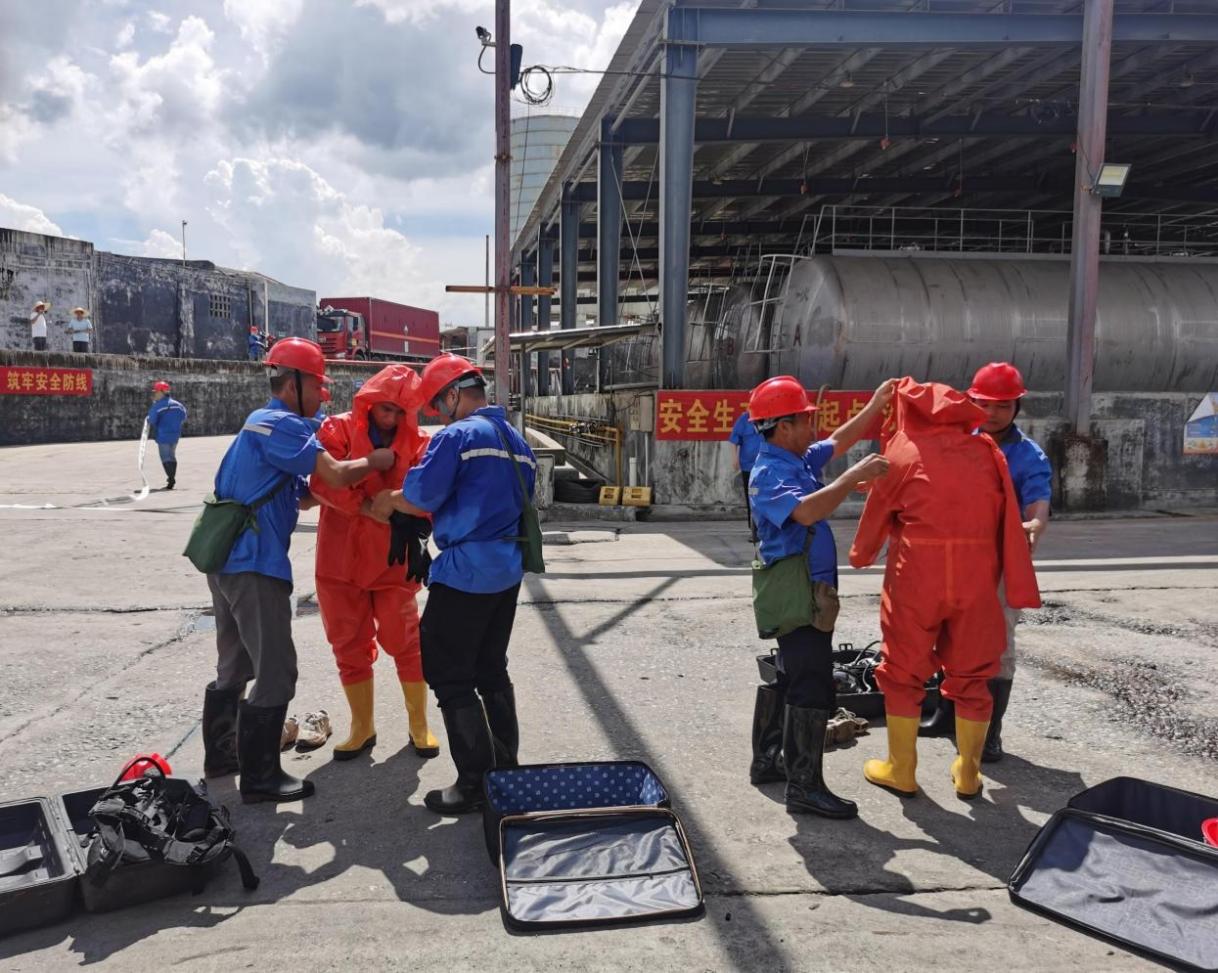 為構(gòu)建統(tǒng)一指揮、反應(yīng)靈敏、協(xié)調(diào)有序、運(yùn)轉(zhuǎn)高效的安全生產(chǎn)應(yīng)急管理機(jī)制,營造政府統(tǒng)一領(lǐng)導(dǎo)、部門協(xié)調(diào)配合、企業(yè)自主到位、社會共同參與的安全生產(chǎn)應(yīng)急管理工作格局,6月27日,市安委辦緊扣“人人講安全,個(gè)個(gè)會應(yīng)急——暢通生命通道”的安全生產(chǎn)月主題,在廣東連發(fā)助劑廠有限公司開展了開平市2024年度危險(xiǎn)化學(xué)品安全生產(chǎn)事故應(yīng)急救援演練。 市應(yīng)急管理局黨委委員、副局長何曉敏,蜆岡鎮(zhèn)黨委委員李鵬輝,?;杉巴槍?zhèn)應(yīng)急辦負(fù)責(zé)同志,廣東連發(fā)助劑廠有限公司主要負(fù)責(zé)人及全體員工參演,開平市化工和危險(xiǎn)化學(xué)品重點(diǎn)企業(yè)主要負(fù)責(zé)人觀演。演練模擬氨水儲罐根部閥發(fā)生破損,氨水大量泄漏,造成人員受傷,“市、鎮(zhèn)、企”三級救援隊(duì)伍通力合作迅速完成應(yīng)急救援處置全過程。 本次演練分工明確,過程高效安全,有效檢驗(yàn)評估了我市生產(chǎn)安全事故應(yīng)急救援綜合條件以及危險(xiǎn)化學(xué)品事故應(yīng)急救援預(yù)案的科學(xué)性和可操作性,提高了各級應(yīng)急隊(duì)伍的搶險(xiǎn)救援實(shí)戰(zhàn)能力,提升了危險(xiǎn)化學(xué)品企業(yè)安全生產(chǎn)事故防范意識和應(yīng)急處置能力。