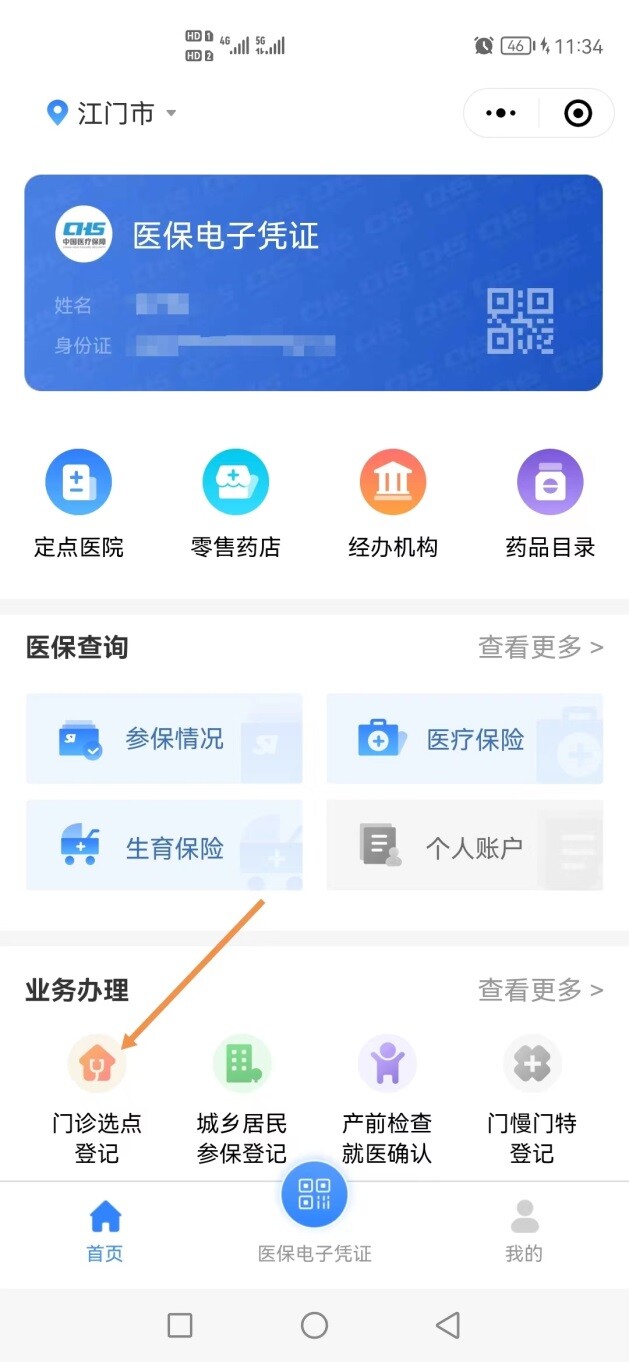 六、點(diǎn)擊“門診選點(diǎn)登記”。