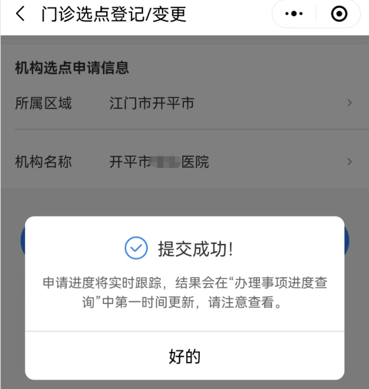 十、提示“提交成功”后可在“門診選點(diǎn)登記”頁面查看新的選點(diǎn)記錄。提示“提交失敗”需根據(jù)提示內(nèi)容查明原因并更正操作方式。