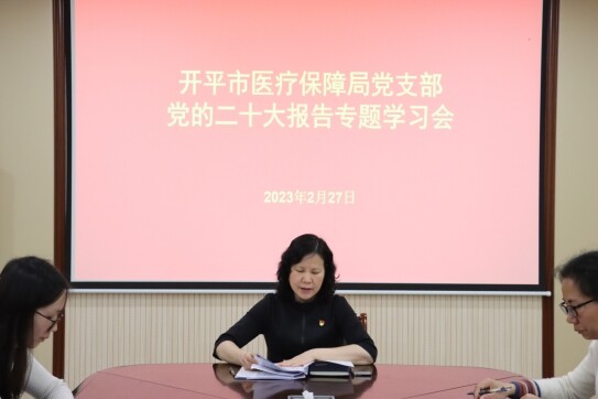 為深入學(xué)習(xí)貫徹黨的二十大精神,2月27日下午,開平市醫(yī)保局召開黨的二十大報(bào)告專題學(xué)習(xí)會(huì),全局黨員干部參會(huì),局黨組書記莊冬梅主持會(huì)議并領(lǐng)學(xué)了報(bào)告內(nèi)容。