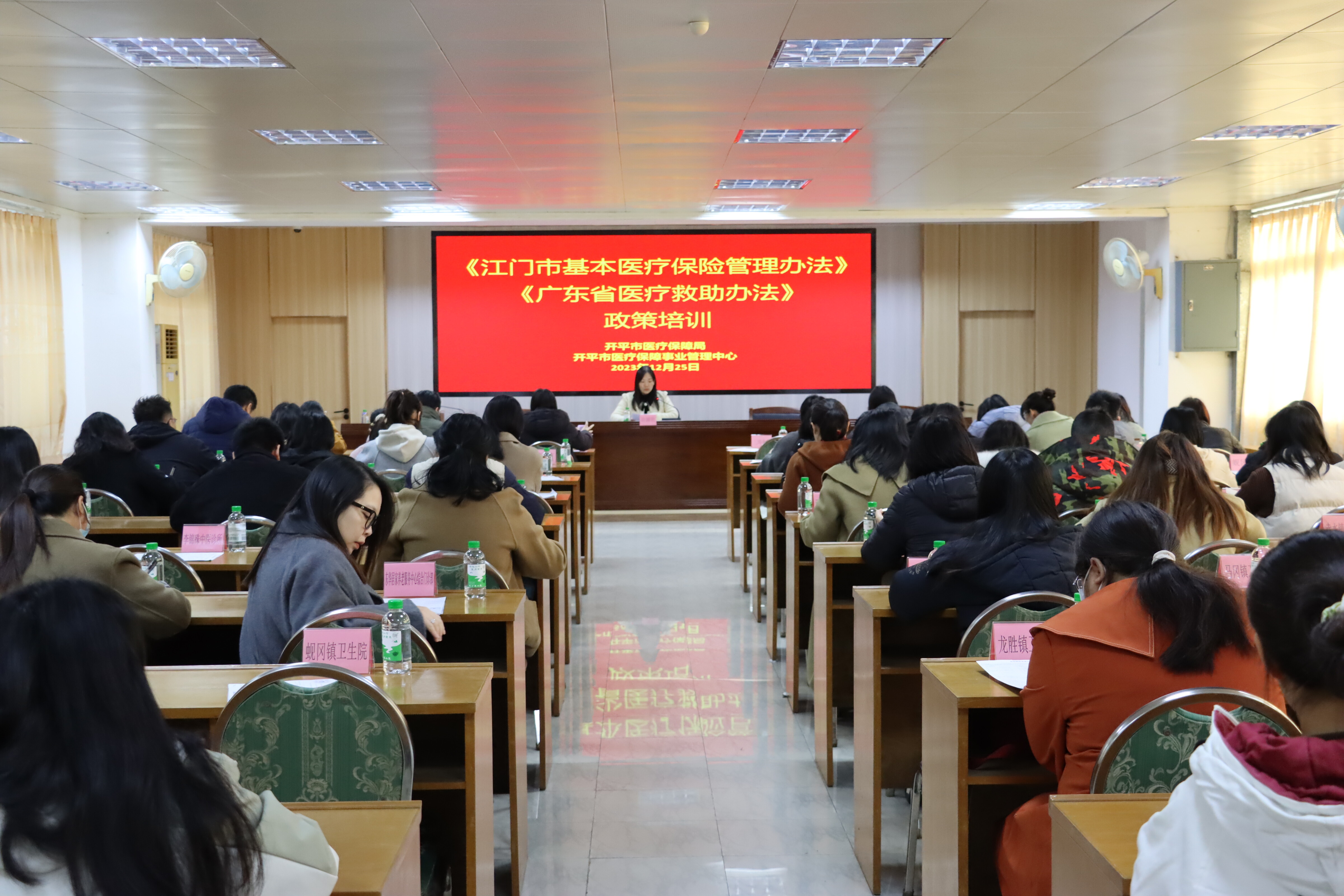 為確保《廣東省醫(yī)療救助辦法》和《江門市基本醫(yī)療保險管理辦法》自2024年1月1日在開平市有序平穩(wěn)實施,市醫(yī)保局高度重視、積極作為,于12月25日上午聯(lián)合市醫(yī)保中心組織召開《廣東省醫(yī)療救助辦法》和《江門市基本醫(yī)療保險管理辦法》政策培訓會,市醫(yī)保局黨組成員、副局長許嬋歡同志出席會議并講話,各鎮(zhèn)(街)、翠山湖管委會以及各定點醫(yī)療機構(gòu)有關(guān)醫(yī)保業(yè)務工作人員共60余人參加會議。