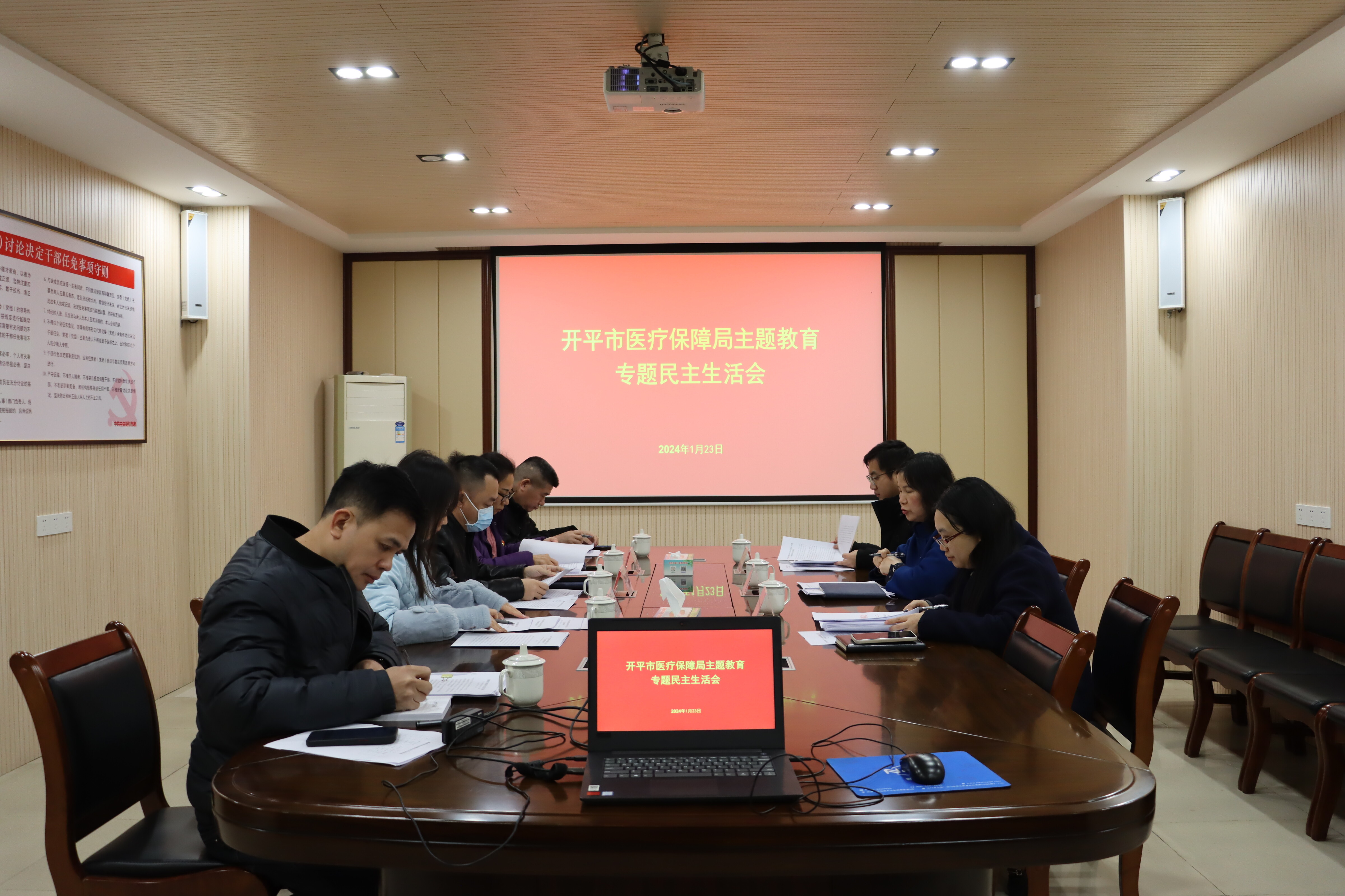 1月23日下午,開平市醫(yī)療保障局黨組召開2023年度主題教育專題民主生活會。市醫(yī)保局黨組書記莊冬梅主持會議,局全體黨組成員參加會議,市委第七督導組組長黃令華到會指導并提出要求。