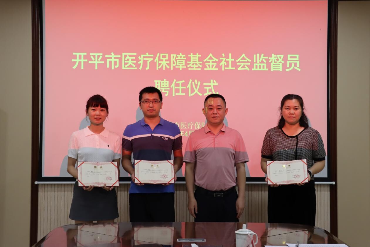 為響應醫(yī)?;鸨O(jiān)管集中宣傳月活動部署,建立健全醫(yī)?;鹕鐣O(jiān)督機制,營造我市醫(yī)保基金全民監(jiān)督、全社會參與的氛圍,4月12日下午,開平市醫(yī)保局舉行了開平市醫(yī)療保障基金社會監(jiān)督員聘任儀式。儀式上,市醫(yī)保局局長顏冠同志為我市醫(yī)?;鹕鐣O(jiān)督員頒發(fā)了聘任證書,副局長何瓊新同志通報了2023年度我市醫(yī)?;鸨O(jiān)管情況及2024年醫(yī)?;鸨O(jiān)管工作計劃,業(yè)務股副股長吳振武同志解讀了《廣東省醫(yī)療保障基金社會監(jiān)督員制度》并與社會監(jiān)督員開展了深入交流研討,充分收集社會監(jiān)督員對于我市醫(yī)保工作的建議意見。