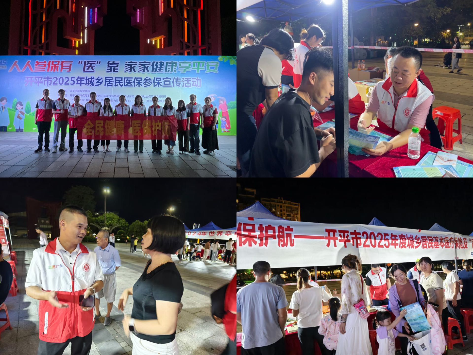 為進(jìn)一步提升群眾對醫(yī)保政策的知曉度,確保醫(yī)?;菝裾呗涞綄?shí)處,10月25日晚,市醫(yī)保局、醫(yī)保中心聯(lián)合市稅務(wù)局、市社保局、市中醫(yī)院以及太平洋財產(chǎn)保險股份有限公司開平分公司(邑康保承保單位)在人民公園中庭廣場舉辦“人人參保有醫(yī)靠 家家健康享平安”2025年度城鄉(xiāng)居民基本醫(yī)療保險暨“邑康保”參保宣傳活動。開平市醫(yī)保局領(lǐng)導(dǎo)班子成員和相關(guān)工作人員參加活動。