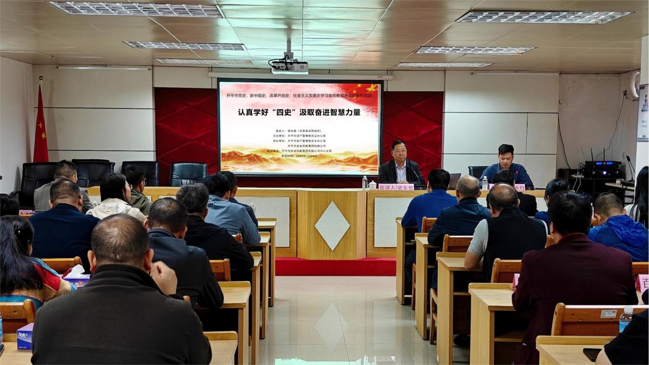 為扎實(shí)推進(jìn)開平市黨史、新中國(guó)史、改革開放史、社會(huì)主義發(fā)展史的宣傳教育,引導(dǎo)干部職工深刻感悟蘊(yùn)含于歷史中的智慧,汲取奮進(jìn)的力量,為企業(yè)改革發(fā)展注入強(qiáng)勁動(dòng)能。12月3日上午,開平市資產(chǎn)辦聯(lián)合市農(nóng)控集團(tuán)公司開展開平市“四史”學(xué)習(xí)宣傳教育進(jìn)企業(yè)系列活動(dòng),邀請(qǐng)開平市委宣講團(tuán)成員梁東想帶來一場(chǎng)以“認(rèn)真學(xué)好‘四史’,汲取奮進(jìn)智慧力量”為主題的開平市“四史”專題宣講會(huì)。集團(tuán)公司全體班子成員、干部職工,下屬企業(yè)經(jīng)營(yíng)班子及各市場(chǎng)站負(fù)責(zé)人共40余人參加宣講會(huì)。 宣講中,梁東想同志以開平市黨史、新中國(guó)史、改革開放史、社會(huì)主義發(fā)展史為脈絡(luò)主線,用豐富的歷史資料、生動(dòng)的語言,講述了開平紅色故事、黨和國(guó)家的奮斗歷程,讓大家深刻解讀“四史”的深刻內(nèi)涵與重要意義,體會(huì)到今日美好生活的來之不易,堅(jiān)定理想信念,以實(shí)際行動(dòng)踐行初心使命,在新時(shí)代新征程中彰顯國(guó)企干部的擔(dān)當(dāng)作為。 下一步,市農(nóng)控集團(tuán)公司將把學(xué)習(xí)貫徹黨的二十屆四中全會(huì)精神與深化“四史”宣傳教育有機(jī)結(jié)合,持續(xù)深化理論武裝,推動(dòng)“四史”學(xué)習(xí)教育走深走實(shí),為推進(jìn)中國(guó)式現(xiàn)代化建設(shè)、開平市高質(zhì)量發(fā)展而努力奮斗!
