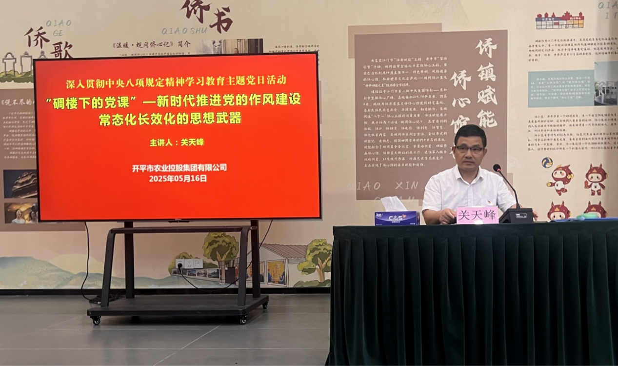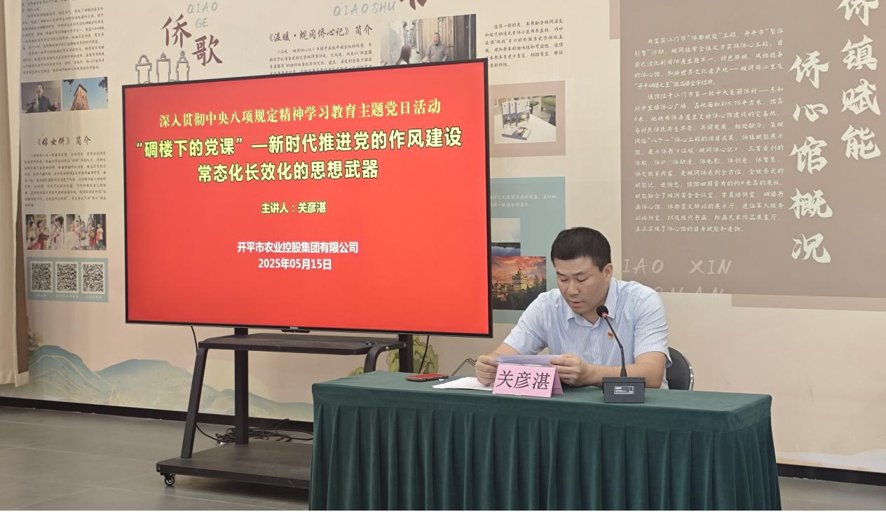 為開展深入貫徹中央八項(xiàng)規(guī)定精神學(xué)習(xí)教育,學(xué)習(xí)領(lǐng)會(huì)習(xí)近平總書記關(guān)于加強(qiáng)作風(fēng)建設(shè)的重要論述精神,提升市屬國有企業(yè)黨員干部黨性修養(yǎng),增強(qiáng)為民服務(wù)意識(shí)。5月15日、16日,市農(nóng)控集團(tuán)組織全體黨員干部前往蜆岡鎮(zhèn)中堅(jiān)樓僑心館開展“碉樓下的黨課”主題黨日活動(dòng)。 活動(dòng)期間,市農(nóng)控集團(tuán)黨委書記關(guān)彥湛、紀(jì)委書記關(guān)天峰分別以“新時(shí)代推進(jìn)黨的作風(fēng)建設(shè)常態(tài)化長效化的思想武器”為題,給黨員們講授作風(fēng)建設(shè)黨課。 大家一致認(rèn)為,貫徹中央八項(xiàng)規(guī)定精神不僅是全面從嚴(yán)治黨的內(nèi)在要求,更是推動(dòng)企業(yè)發(fā)展的重要保障。要認(rèn)真學(xué)習(xí)領(lǐng)會(huì)習(xí)近平總書記關(guān)于加強(qiáng)黨的作風(fēng)建設(shè)的重要論述,傳承弘揚(yáng)黨的優(yōu)良作風(fēng),嚴(yán)格遵守中央八項(xiàng)規(guī)定及其實(shí)施細(xì)則精神,樹立正確的政績觀和事業(yè)觀,以更加飽滿的熱情和更加務(wù)實(shí)的作風(fēng),投身到各項(xiàng)工作中去,通過不斷提高自身的政治素質(zhì)和黨性涵養(yǎng),為企業(yè)的持續(xù)健康發(fā)展貢獻(xiàn)自己的力量。 活動(dòng)中,黨員們還前往廣東圣迪樂村生態(tài)食品有限公司,參觀了該公司現(xiàn)代化生產(chǎn)線和養(yǎng)殖基地。圣迪樂公司是“百縣千鎮(zhèn)萬村高質(zhì)量發(fā)展工程”中的重要項(xiàng)目,通過引進(jìn)先進(jìn)的養(yǎng)殖技術(shù)和管理經(jīng)驗(yàn),提高了農(nóng)產(chǎn)品的質(zhì)量和產(chǎn)量,推動(dòng)了農(nóng)業(yè)產(chǎn)業(yè)的升級(jí),在鄉(xiāng)村振興戰(zhàn)略中發(fā)揮了引領(lǐng)作用。 本次主題黨日活動(dòng)形式多樣,既有現(xiàn)場“沉浸式”理論學(xué)習(xí),又有實(shí)地參觀。黨員們不僅深刻認(rèn)識(shí)到中央八項(xiàng)規(guī)定精神的重大意義,還親身感受到了鄉(xiāng)村振興戰(zhàn)略的實(shí)施成果。大家紛紛表示,要將此次活動(dòng)的收獲轉(zhuǎn)化為工作動(dòng)力,為推動(dòng)市屬國有企業(yè)高質(zhì)量發(fā)展作出更大貢獻(xiàn)。
