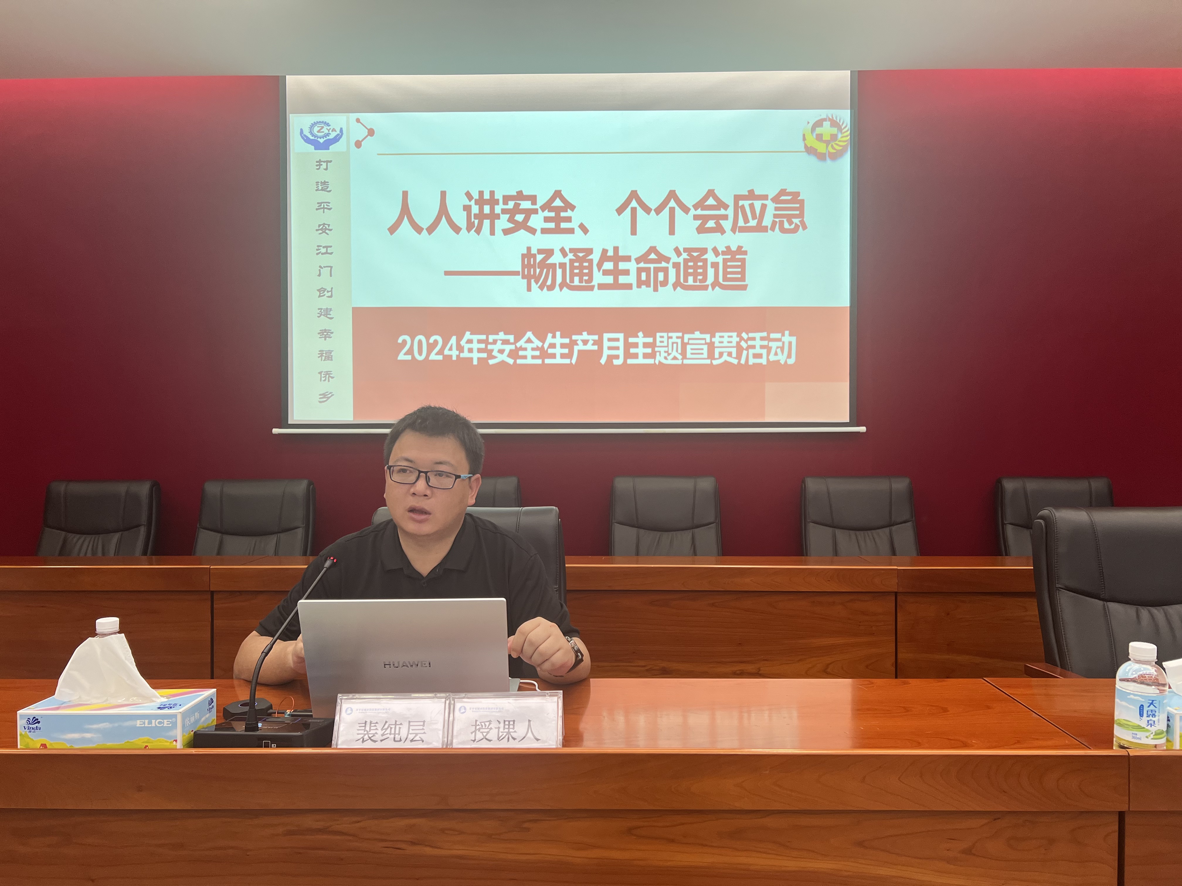 個(gè)個(gè)會(huì)應(yīng)急—暢通生命通道”主題,開展了安全生產(chǎn)專項(xiàng)培訓(xùn)及消防應(yīng)急疏散演練活動(dòng)。集團(tuán)公司及下屬企業(yè)全體員工、新美園區(qū)企業(yè)“第一責(zé)任人”、重點(diǎn)項(xiàng)目安全生產(chǎn)負(fù)責(zé)人共計(jì)60余人參加了活動(dòng)。 此次活動(dòng)特邀開平市中邑安安全技術(shù)咨詢有限公司安全生產(chǎn)培訓(xùn)講師裴純層同志前來指導(dǎo)授課,培訓(xùn)采取理論與實(shí)踐相結(jié)合的方式,分為安全生產(chǎn)專項(xiàng)培訓(xùn)和消防應(yīng)急疏散演練兩部分內(nèi)容開展。 理論課堂“強(qiáng)意識(shí)” 理論教學(xué)過程,授課老師以《深入學(xué)習(xí)貫徹習(xí)近平關(guān)于應(yīng)急管理的重要論述》為重點(diǎn),引導(dǎo)參會(huì)人員深入學(xué)習(xí)貫徹習(xí)近平總書記關(guān)于安全生產(chǎn)重要論述,全面領(lǐng)會(huì)精髓要義,圍繞“人人講安全、個(gè)個(gè)會(huì)應(yīng)急——暢通生命通道”主題,結(jié)合安全生產(chǎn)治本攻堅(jiān)三年行動(dòng),深入解讀《安全生產(chǎn)法》、學(xué)習(xí)《工貿(mào)企業(yè)重大事故隱患判定標(biāo)準(zhǔn)》,通過淺談如何建立健全全員安全生產(chǎn)責(zé)任制度,幫助大家進(jìn)一步了解各個(gè)崗位在安全工作中應(yīng)承擔(dān)的責(zé)任,提升全員安全防范意識(shí)和應(yīng)急避險(xiǎn)能力。培訓(xùn)現(xiàn)場(chǎng)氣氛活躍,極大地調(diào)動(dòng)了全員參與安全宣傳教育的積極性。 理論課堂上還組織觀看了《安全生產(chǎn)