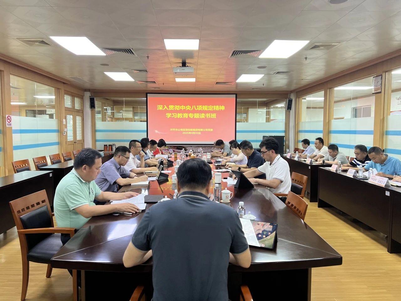 4月22日,公控集團(tuán)黨委舉辦理論學(xué)習(xí)中心組(擴(kuò)大)學(xué)習(xí)暨深入貫徹中央八項(xiàng)規(guī)定精神學(xué)習(xí)教育專題讀書班,認(rèn)真學(xué)習(xí)領(lǐng)會(huì)習(xí)近平總書記關(guān)于加強(qiáng)黨的作風(fēng)建設(shè)的重要論述,深入學(xué)習(xí)貫徹中央八項(xiàng)規(guī)定及其實(shí)施細(xì)則精神,推動(dòng)學(xué)習(xí)教育走深走實(shí)。公控集團(tuán)黨委書記、董事長伍衛(wèi)良參加讀書班并主持集中交流,集團(tuán)黨委班子成員、各部室及下屬單位負(fù)責(zé)人參加讀書班。 此次專題讀書班采取領(lǐng)導(dǎo)領(lǐng)學(xué)、集中學(xué)習(xí)和個(gè)人自學(xué)相結(jié)合的方式進(jìn)行,逐字逐句學(xué)習(xí)中央八項(xiàng)規(guī)定及其實(shí)施細(xì)則精神,深刻領(lǐng)悟習(xí)近平總書記關(guān)于加強(qiáng)黨的作風(fēng)建設(shè)的重要論述所蘊(yùn)含的深遠(yuǎn)意義和豐富內(nèi)涵,與會(huì)同志圍繞學(xué)習(xí)內(nèi)容,聯(lián)系思想和工作實(shí)際開展交流研討,在思想碰撞中深化對作風(fēng)建設(shè)重要性的理解。 會(huì)議強(qiáng)調(diào),要提高政治站位,穩(wěn)固作風(fēng)建設(shè)“定盤星”。要從思想上、行動(dòng)上與黨中央保持高度一致,將貫徹落實(shí)中央八項(xiàng)規(guī)定精神作為一項(xiàng)重要的政治任務(wù),堅(jiān)決杜絕任何形式的形式主義、官僚主義。以高度的政治責(zé)任感和使命感,將中央八項(xiàng)規(guī)定精神內(nèi)化于心、外化于行,讓作風(fēng)建設(shè)成為工作常態(tài),成為推動(dòng)公控集團(tuán)發(fā)展的強(qiáng)大動(dòng)力。要聚焦主責(zé)主業(yè),以優(yōu)良作風(fēng)驅(qū)動(dòng)企業(yè)高質(zhì)量發(fā)展。把貫徹落實(shí)中央八項(xiàng)規(guī)定精神與企業(yè)經(jīng)營、安全發(fā)展工作緊密結(jié)合起來,深入貫徹落實(shí)黨中央關(guān)于深化國資國企改革的決策部署,堅(jiān)持問題導(dǎo)向,突出重點(diǎn)領(lǐng)域和關(guān)鍵環(huán)節(jié),圍繞公控集團(tuán)三年發(fā)展規(guī)劃目標(biāo),加快推動(dòng)在三大主業(yè)板塊上形成產(chǎn)業(yè)結(jié)構(gòu)更優(yōu)、主責(zé)主業(yè)更突出、核心競爭力更強(qiáng)的經(jīng)營格局。通過完善考核制度、實(shí)施“薪效聯(lián)動(dòng)”、突出經(jīng)營業(yè)績和安全生產(chǎn)指標(biāo)和完善管理人員考核評價(jià)體系等舉措,激發(fā)干部擔(dān)當(dāng)作為新活力。要強(qiáng)化自身建設(shè),鍛造忠誠干凈擔(dān)當(dāng)?shù)母刹胯F軍。全體黨員干部要堅(jiān)守廉潔底線,帶頭遵規(guī)守紀(jì)、帶頭改進(jìn)作風(fēng),以上率下形成“頭雁效應(yīng)”,推動(dòng)壓力層層傳導(dǎo)、責(zé)任級級落實(shí)。同時(shí),通過查處典型案例、開展警示教育等方式,引導(dǎo)黨員干部增強(qiáng)紀(jì)律規(guī)矩意識,自覺遵守中央八項(xiàng)規(guī)定精神。