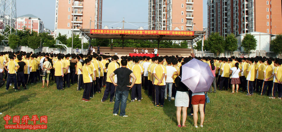 為深入開展“平安開平 法治開平”法律進(jìn)學(xué)?;顒?dòng),9月16日下午,我市在世界譚氏中學(xué)舉行青少年法制案例讀本贈(zèng)書儀式。市司法局、教育局、普法辦、全市中心學(xué)校政工員、譚氏中學(xué)師生等2000多人參加了活動(dòng)。