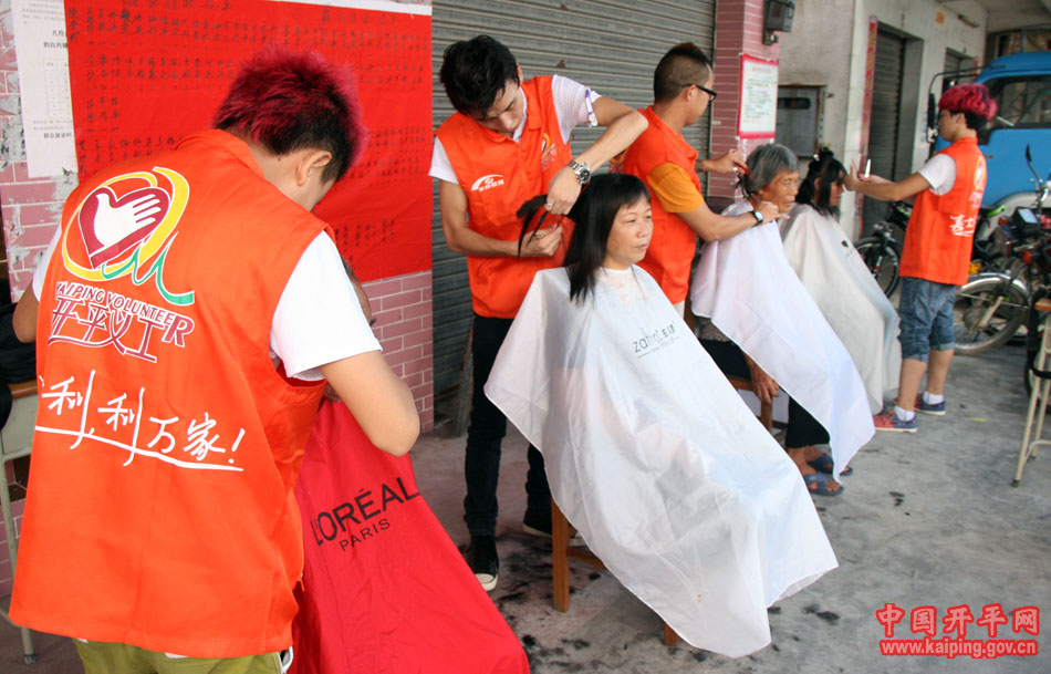 據(jù)悉,這是義工聯(lián)首次組織社區(qū)義工到鄉(xiāng)鎮(zhèn)開展活動(dòng)。早上八點(diǎn)左右,僑園社區(qū)15名義工攜帶相關(guān)的活動(dòng)工具來到塘口鎮(zhèn),在距離鎮(zhèn)政府不到3公里的魁崗村陳氏大樓布置現(xiàn)場(chǎng)。大樓門口四張椅子一字排開,義剪隊(duì)為村民理發(fā),還有“導(dǎo)師”負(fù)責(zé)現(xiàn)場(chǎng)指導(dǎo)學(xué)員;樓內(nèi)原始點(diǎn)按摩義工隊(duì)為有需要的群眾進(jìn)行按摩。