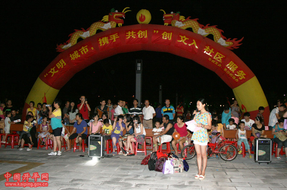 8月9日晚上,市創(chuàng)文辦聯(lián)合長沙街道辦事處以及相關部門單位在開平市人民公園舉辦第十二期創(chuàng)文宣傳入社區(qū)活動,精彩紛呈文藝表演吸引眾多市民駐足觀看。
