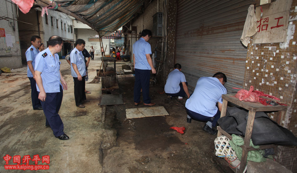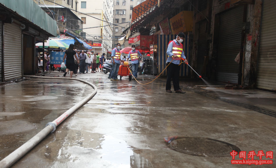 是日上午,市工商局與城監(jiān)大隊(duì)、公安局、衛(wèi)生局、農(nóng)業(yè)局、疾控中心、市場(chǎng)物業(yè)管理公司以及長(zhǎng)沙街道辦等多部門聯(lián)合執(zhí)法,拉起警戒線,對(duì)幸福市場(chǎng)周邊的“三鳥”經(jīng)營(yíng)鋪位進(jìn)行消毒,用高壓水槍沖洗街道,還市民一個(gè)清潔衛(wèi)生的生活環(huán)境。