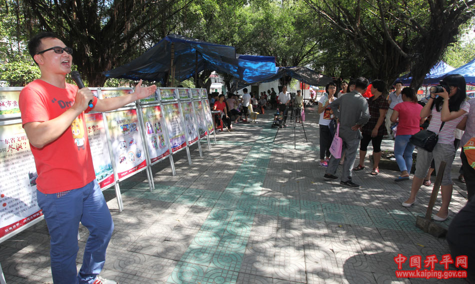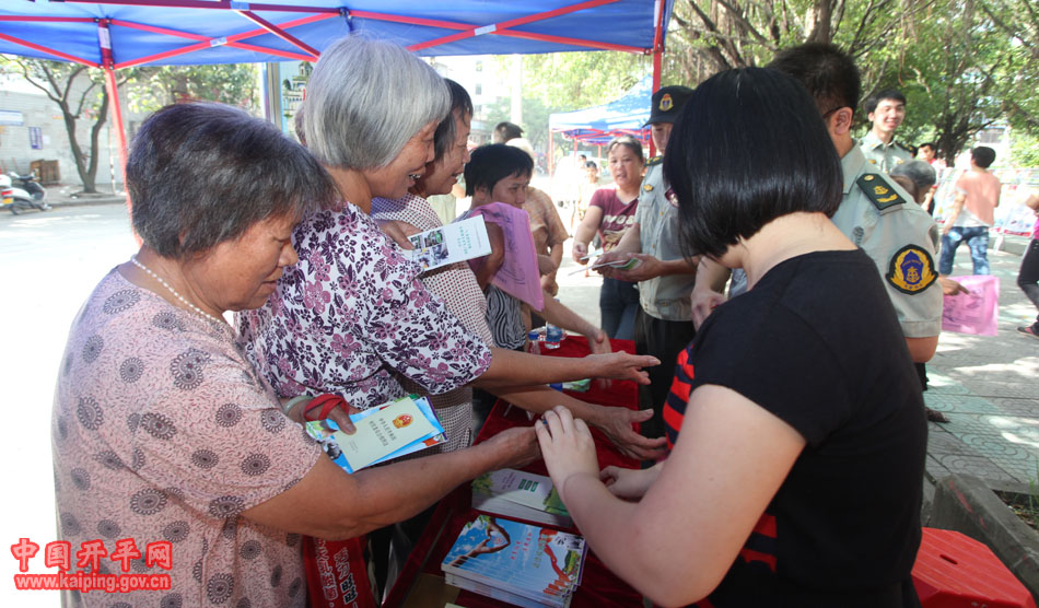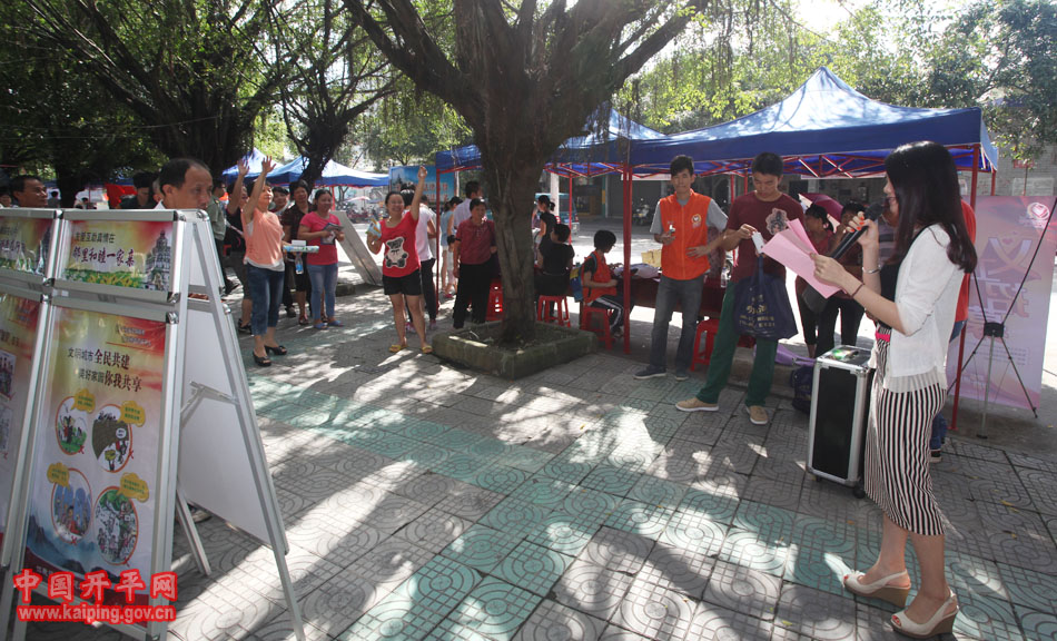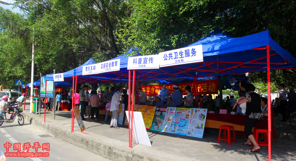 7月11日上午,創(chuàng)文宣傳活動(dòng)走進(jìn)三埠荻海社區(qū)。市公安局、衛(wèi)生局、科技局、司法局、文化館等部門(mén)在現(xiàn)場(chǎng)向市民宣傳創(chuàng)文、科普、法制、交通安全、公共衛(wèi)生等政策和知識(shí),為市民提供免費(fèi)法律咨詢、醫(yī)療保健等服務(wù),還有文藝表演和創(chuàng)文知識(shí)有獎(jiǎng)問(wèn)答環(huán)節(jié)。豐富多彩的活動(dòng),活躍了社區(qū)創(chuàng)文氣氛,吸引眾多市民踴躍參與。