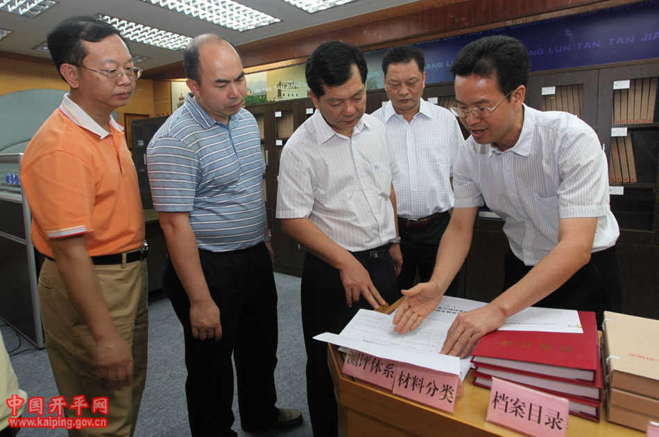 市委書記黃耀雄在聽取創(chuàng)文辦資料組組長鄺學良介紹相關情況后,對資料整理的規(guī)范表示肯定,贊揚其體現(xiàn)僑鄉(xiāng)開平特色的創(chuàng)新做法,鼓勵資料組工作人員再接再厲,按照創(chuàng)文要求逐步完善資料收集整理工作。