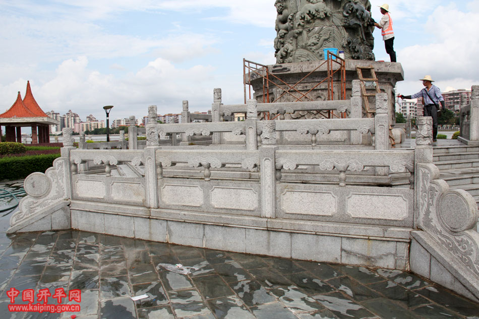 為迎接市創(chuàng)建省文明城市,展示我市標(biāo)志性建筑的風(fēng)采,28日起,我市對城市廣場兩條龍鳳石柱進(jìn)行全面清洗。據(jù)悉,本次清洗活動(dòng)將維持一個(gè)星期時(shí)間,由于清洗過程中使用了大量的刺激性、腐蝕性、揮發(fā)性的化學(xué)藥品,廣大市民在此期間不要走近接觸龍鳳石柱,以免被化學(xué)藥品傷害。