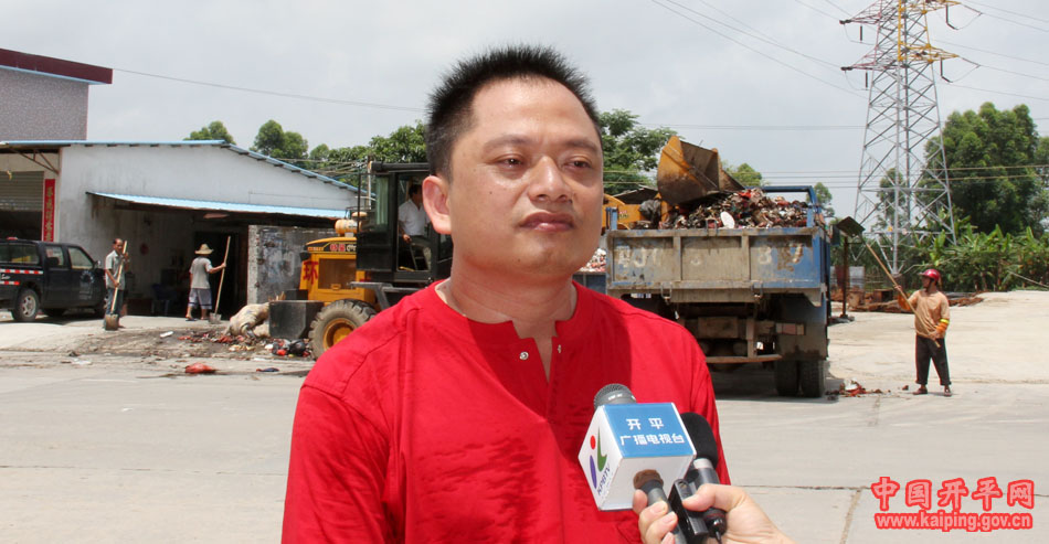 逕頭垃圾中轉(zhuǎn)站原來(lái)的作用只是收集逕頭城區(qū)部分的垃圾。按照開(kāi)平市農(nóng)村垃圾處理方案要求,各村(居)委會(huì)應(yīng)在各村設(shè)置垃圾容器,鎮(zhèn)(街道)自行把收集到的垃圾運(yùn)送到市垃圾場(chǎng)去處理。開(kāi)平市環(huán)衛(wèi)處副主任方錦安:“但是,在逕頭居委會(huì)的農(nóng)村垃圾就這樣倒來(lái)這里。他們又不是倒進(jìn)斗里,而是倒落地面,我們已經(jīng)提醒他們很多次了,他們每次都沒(méi)有整改。一般10日左右就運(yùn)一次垃圾出來(lái)這里,用簡(jiǎn)易車、手扶機(jī)全倒到地面,很不合作?!?