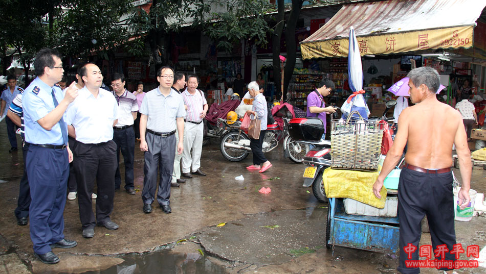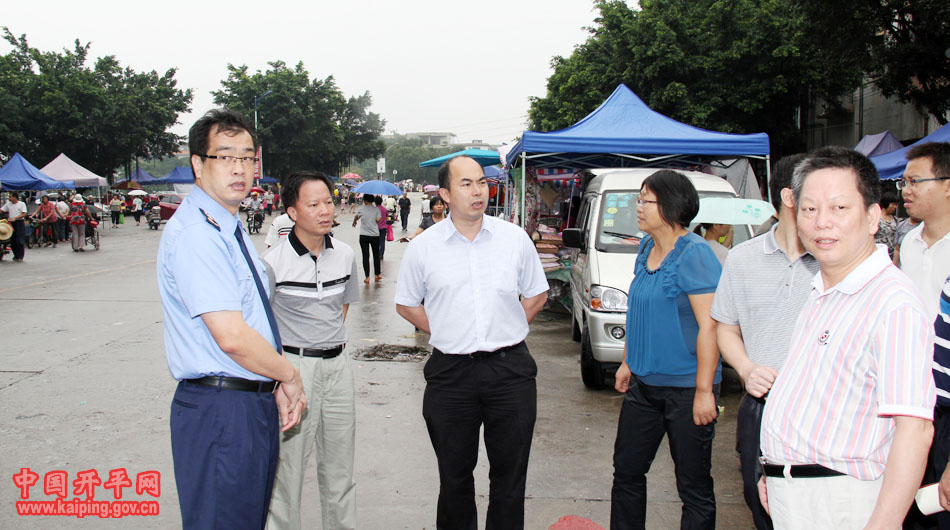 督察組一行先后實(shí)地檢查了銀海市場(chǎng)、逕頭露天集市、龍頭市場(chǎng)、幸福市場(chǎng)及其周邊環(huán)境整治情況。隨后在開平工商局召開座談會(huì),聽取了工商、市場(chǎng)物業(yè)、食藥監(jiān)等部門的創(chuàng)文工作匯報(bào),并圍繞如何抓好集貿(mào)市場(chǎng)及周邊環(huán)境整治等工作進(jìn)行研討。