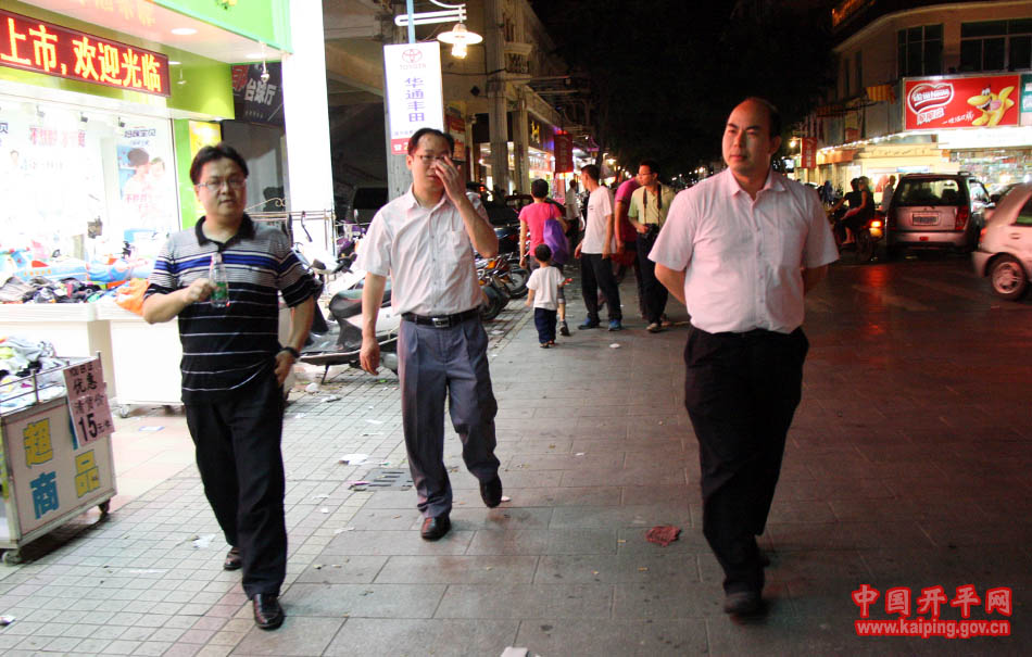 市委常委、市委宣傳部部長(zhǎng)陳靖在步行街西邊檢查環(huán)境衛(wèi)生