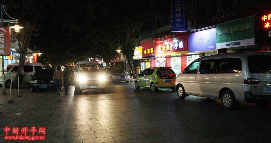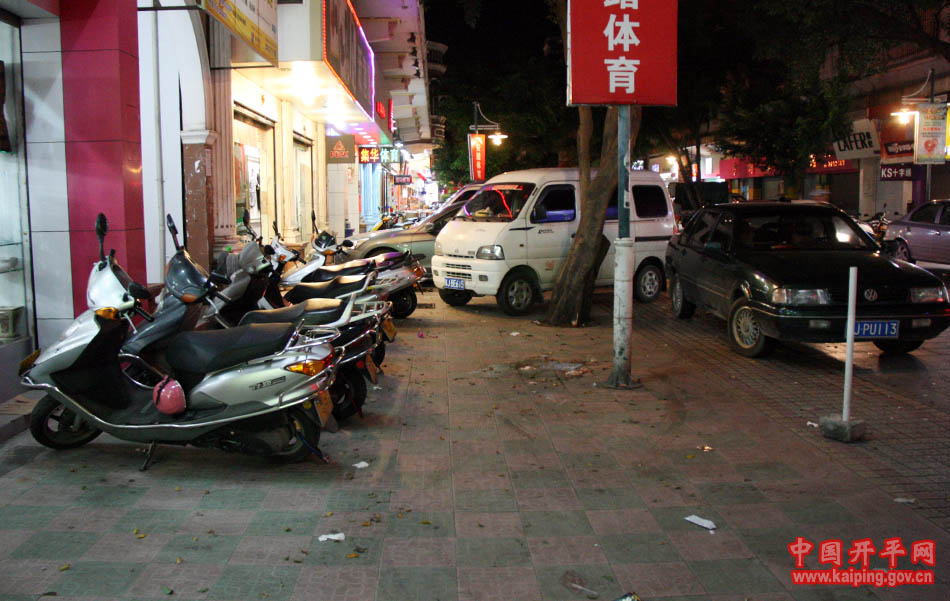 步行街西邊橫七豎八的私家車和滿地垃圾