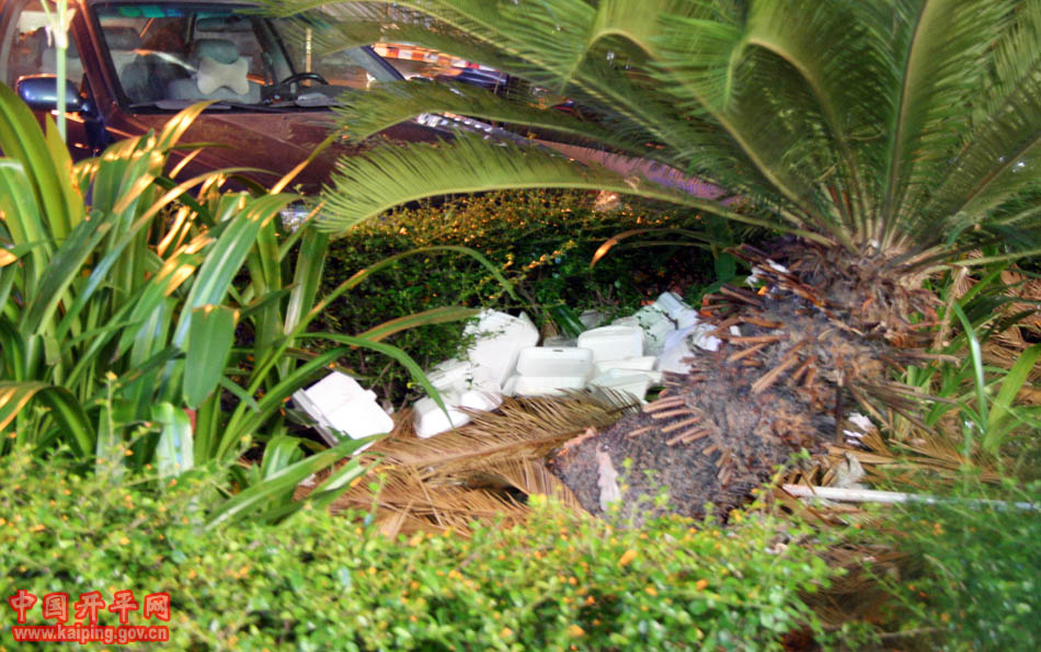 而海怡園樓下臨江的商鋪,“門前三包”做得不夠到位,部分商鋪在關(guān)電后用塑料袋把垃圾嚴(yán)嚴(yán)實(shí)實(shí)地包裝好放在店門口,但更多的隨意把垃圾扔在店前的花圃附近,甚至用一次性飯盒填滿花圃。