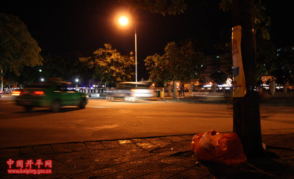 人來(lái)車往,散落的垃圾在樹下靜待環(huán)衛(wèi)工人明晨來(lái)
