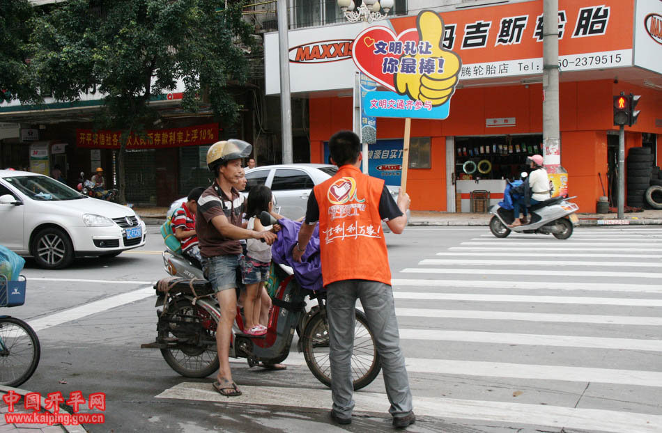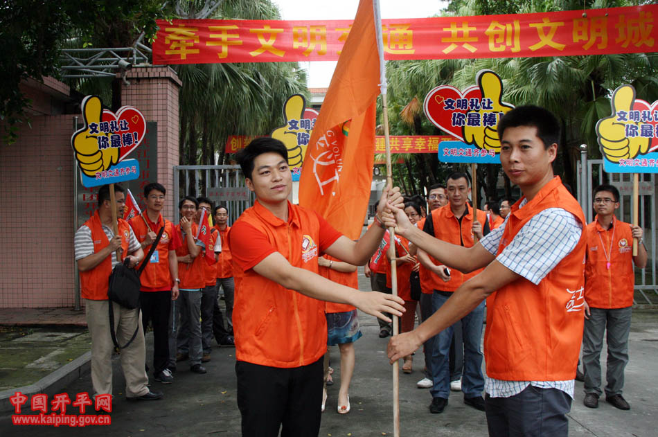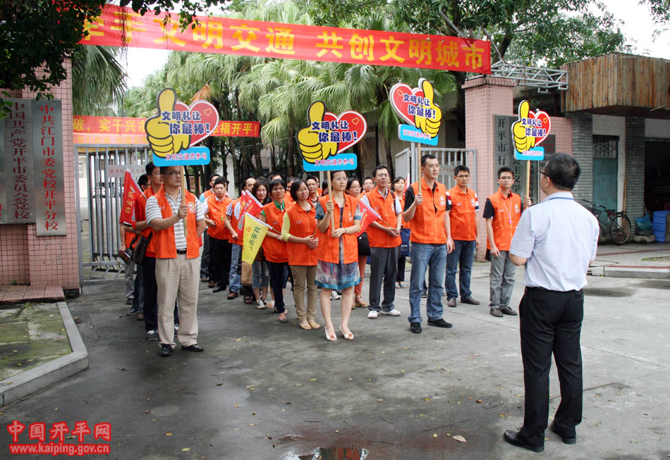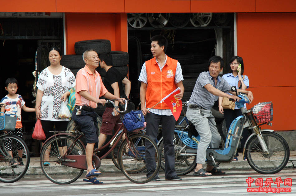 5月16日下午,開平市42名中青年干部身穿義工服走上街頭,開展文明交通行為勸導(dǎo)活動(dòng),共同為我市創(chuàng)建省文明城市出一份力量。