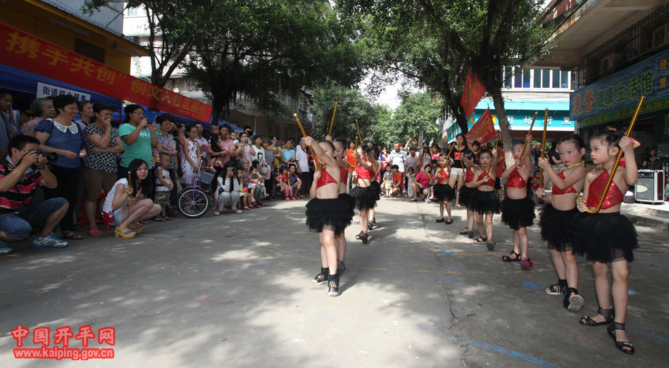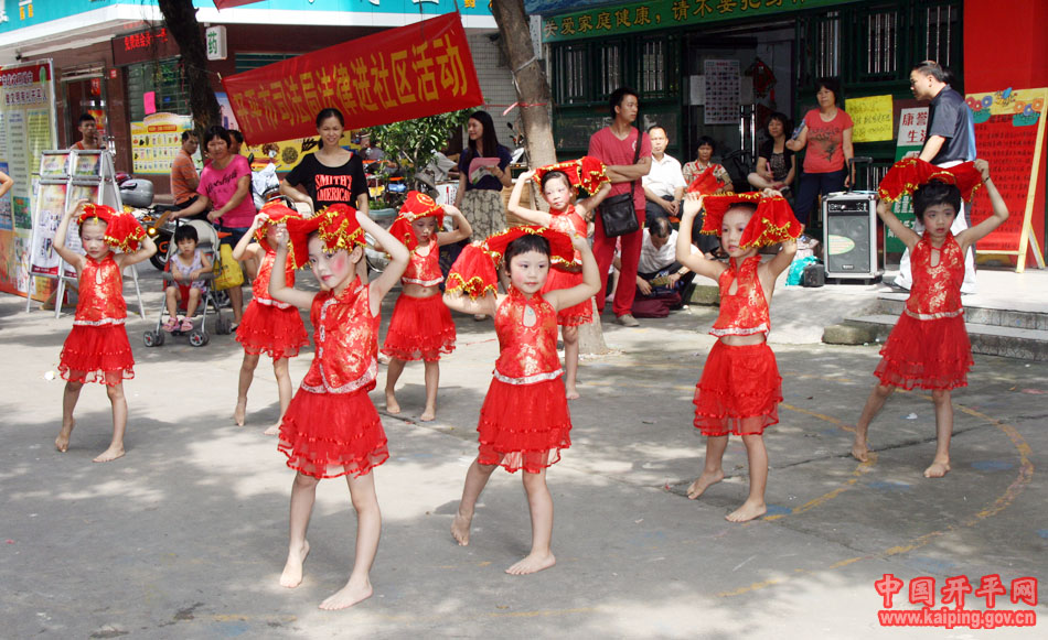 活動中,該社區(qū)金蘋果幼兒園的小朋友和義工為市民帶來精彩的舞蹈表演??蓯鄣男∨笥褌兇┲笳飨矐c的紅色紗裙,手拿鑲金邊的方手絹,在舞蹈中幽默風趣地展現(xiàn)迎親的全過程,小“新郎”掀起小“新娘”的蓋頭后輕吻臉頰的情景更惹得駐足觀看的市民們捧腹大笑,童真童趣的展現(xiàn)讓市民們共同“溫習”了中華傳統(tǒng)習俗中的婚嫁禮俗, 文明歡樂的氛圍了每一位觀眾。