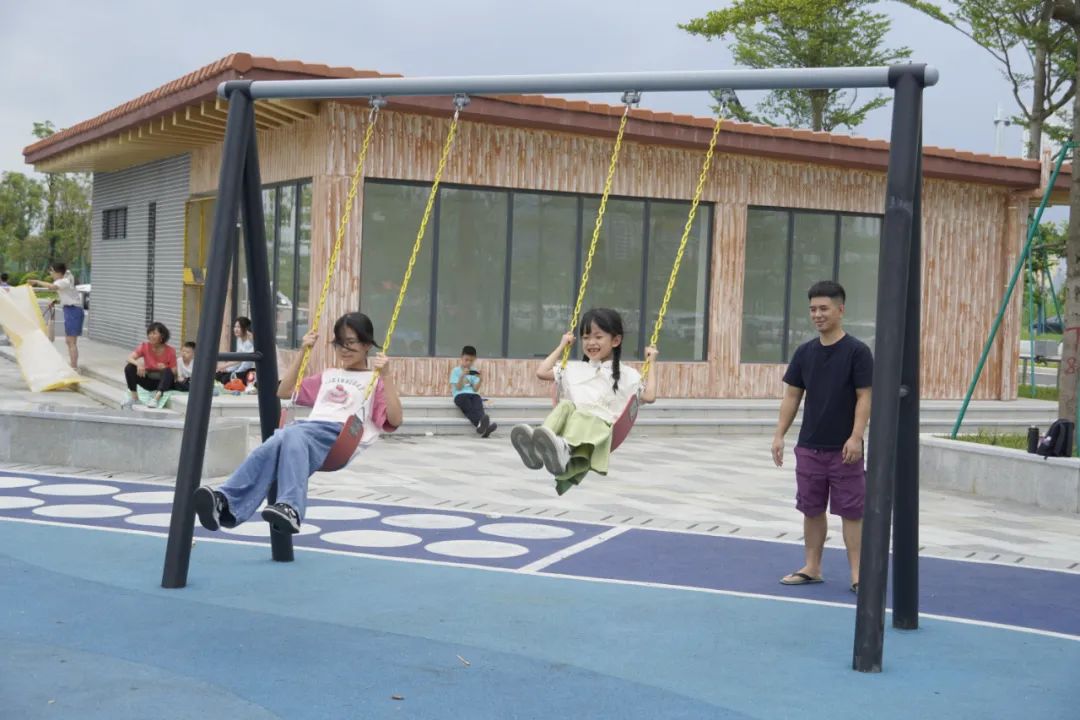 樂園面積約1630平方米,設置有大魚滑梯、兒童健身器材、蹦床、秋千等豐富多樣的兒童游玩設施,深受大朋友、小朋友喜愛。不少家長表示,漁趣樂園為家庭親子活動提供了一個理想場所。