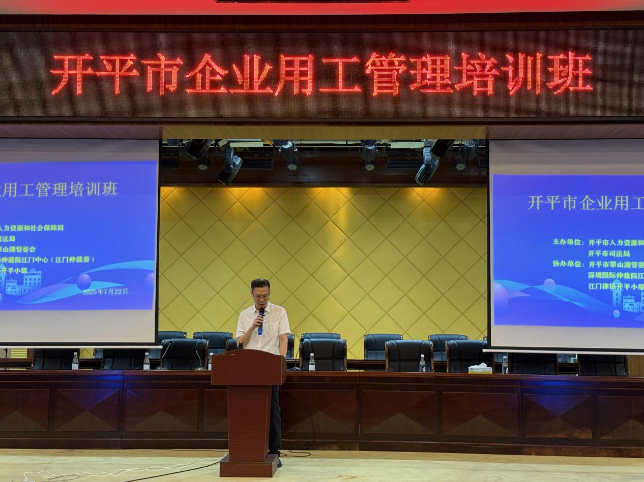 本次培訓(xùn)班上,律師代表就“企業(yè)勞動(dòng)用工規(guī)范與風(fēng)險(xiǎn)防范實(shí)務(wù)指南”進(jìn)行專題講解,結(jié)合典型案例與工作實(shí)際,指出企業(yè)用工管理過程中可能存在的風(fēng)險(xiǎn)點(diǎn),例如“勞動(dòng)合同簽訂規(guī)范”“員工離職管理”“工傷事故處理流程”等,指導(dǎo)企業(yè)通過完善規(guī)章制度、加強(qiáng)勞動(dòng)合同管理、強(qiáng)化協(xié)商協(xié)調(diào)等方式健全管理機(jī)制。同時(shí),深圳國際仲裁院江門中心有關(guān)負(fù)責(zé)同志圍繞“企業(yè)法律風(fēng)險(xiǎn)防范與爭議解決路徑選擇”提出策略與建議。