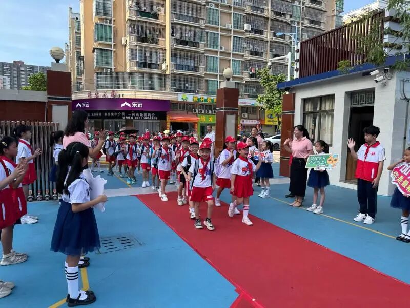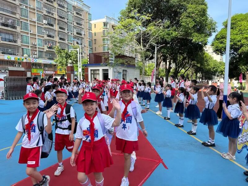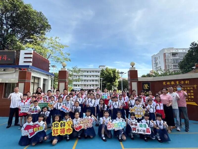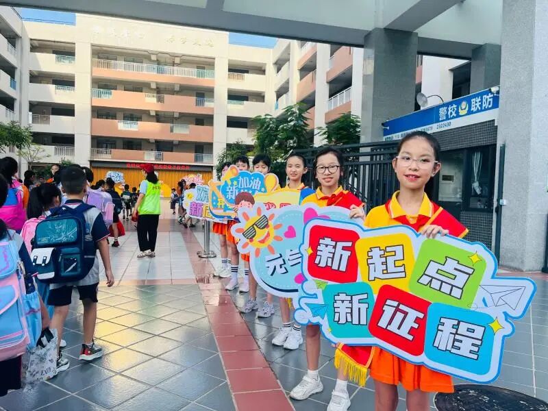 結(jié)束了暑熱喧騰的假期 9月1日 開平市約11.25萬(wàn)名 中小學(xué)、幼兒園學(xué)生 返校開學(xué) 新學(xué)期 新開始 沉寂已久的校園 再次被同學(xué)們的歡聲笑語(yǔ)喚醒 校園在一聲聲 “早上好”“老師好”中 熱鬧起來(lái) 處處洋溢著蓬勃的朝氣與活力 △開學(xué)首日,僑園路小學(xué)校園洋溢著溫馨與活力的氛圍。開平教育吉祥物“小開”“小蘋”化身迎賓大使,熱情問(wèn)候每位同學(xué);每位同學(xué)入校即獲贈(zèng)一把寓意吉祥的扇子,滿載美好祝福。 △長(zhǎng)沙澄江小學(xué)學(xué)生們衣著整齊有序回校園。 △朱砂點(diǎn)智、擊鼓鳴志、童心印記……開平市風(fēng)采實(shí)驗(yàn)學(xué)校以富含文化底蘊(yùn)的入學(xué)儀式,為一年級(jí)新生開啟求知成長(zhǎng)的新征程。 △祥龍學(xué)校學(xué)生們有序回校園。 △譚宏帙紀(jì)念小學(xué)秋季開學(xué)日溫情滿溢。全體教師在校門口為每一位新生佩戴?;?,這枚徽章既是身份的印記,更是對(duì)孩子們未來(lái)學(xué)習(xí)生活的美好寄望。少先隊(duì)大隊(duì)委則熱情引路,牽手萌新踏入校園,共同開啟一場(chǎng)充滿挑戰(zhàn)與希望的成長(zhǎng)之旅。 △開平市梁金山小學(xué)校門口熱鬧非凡,醒目威武的醒獅伴隨著喜慶的鼓點(diǎn)歡快靈動(dòng)地舞動(dòng),敲鑼打鼓聲此起彼伏,每一個(gè)動(dòng)作都充滿了活力與熱情,向每一位踏入校園的新生及家長(zhǎng)致以最熱烈的歡迎。 △新安小學(xué)學(xué)生們?cè)趯W(xué)校留影區(qū)合影留念,記錄新學(xué)期開學(xué)瞬間。 △長(zhǎng)沙幕村小學(xué)禮儀隊(duì)迎接學(xué)生回校。 新學(xué)期 新成長(zhǎng) 開學(xué)首日 開平市各學(xué)校 通過(guò)升旗儀式 主題班會(huì)等豐富多彩的活動(dòng) 激勵(lì)學(xué)生們堅(jiān)定奮勇前行的方向 努力爭(zhēng)做“四個(gè)自信”好少年 △開學(xué)第一天,開平市第一中學(xué)舉行升旗儀式,并寄語(yǔ)全校學(xué)生,要恪守校訓(xùn)、修身明德、追求真知,成為有擔(dān)當(dāng)、有作為的新時(shí)代青年。 △風(fēng)采實(shí)驗(yàn)中學(xué)老師為學(xué)生上了生動(dòng)的開學(xué)第一課,引導(dǎo)學(xué)生在新學(xué)期開好頭、起好步。 △譚宏帙紀(jì)念小學(xué)開展以“傳承勝利之光,啟航夢(mèng)想新程”為主題的開學(xué)典禮。今年是中國(guó)人民抗日戰(zhàn)爭(zhēng)暨世界反法西斯戰(zhàn)爭(zhēng)勝利80周年,在開學(xué)典禮上開展愛國(guó)主義教育,傳承愛國(guó)主義精神,讓學(xué)生進(jìn)一步了解歷史,以史為鏡,自強(qiáng)不息。 每一次啟航 都是在積蓄新的成長(zhǎng) 新學(xué)期的號(hào)角已吹響 一切美好都已蓄勢(shì)待發(fā)~ 期待開平學(xué)子們 在新的學(xué)期里乘風(fēng)破浪 一起向未來(lái),闊步奔前方!