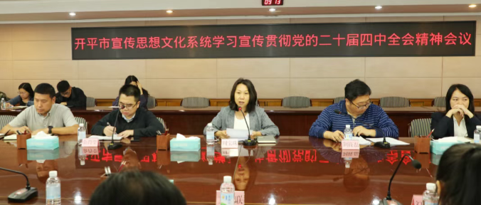 10月29日上午,開平市委宣傳部組織召開全市宣傳文化系統(tǒng)學習宣傳貫徹黨的二十屆四中全會精神專題會議,傳達學習習近平總書記在黨的二十屆四中全會上的重要講話和全會精神,貫徹落實省委、江門市委、開平市委有關會議精神,研究全市宣傳文化系統(tǒng)貫徹落實措施。市委常委、宣傳部部長周寶珠出席并講話。